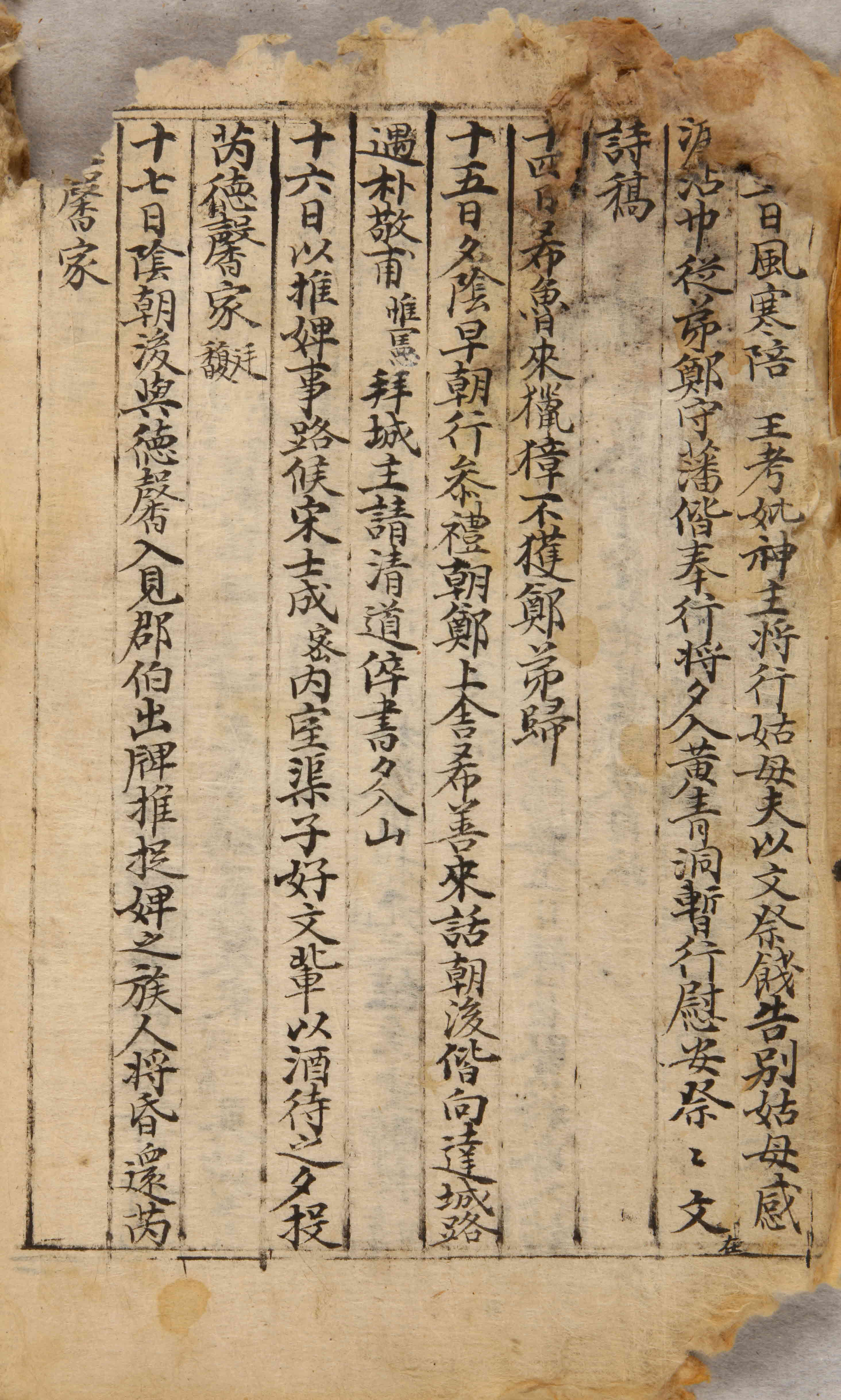 아침을 먹은 뒤에 덕형(德馨)[예정복(芮廷馥)]과 함께 들어가서 군백(郡伯, 郡守)을 뵈었다. 패를 내어 여종의 족인(族人)을 잡으라고 했다. 저물녘에 예덕형의 집으로 돌아갔다.