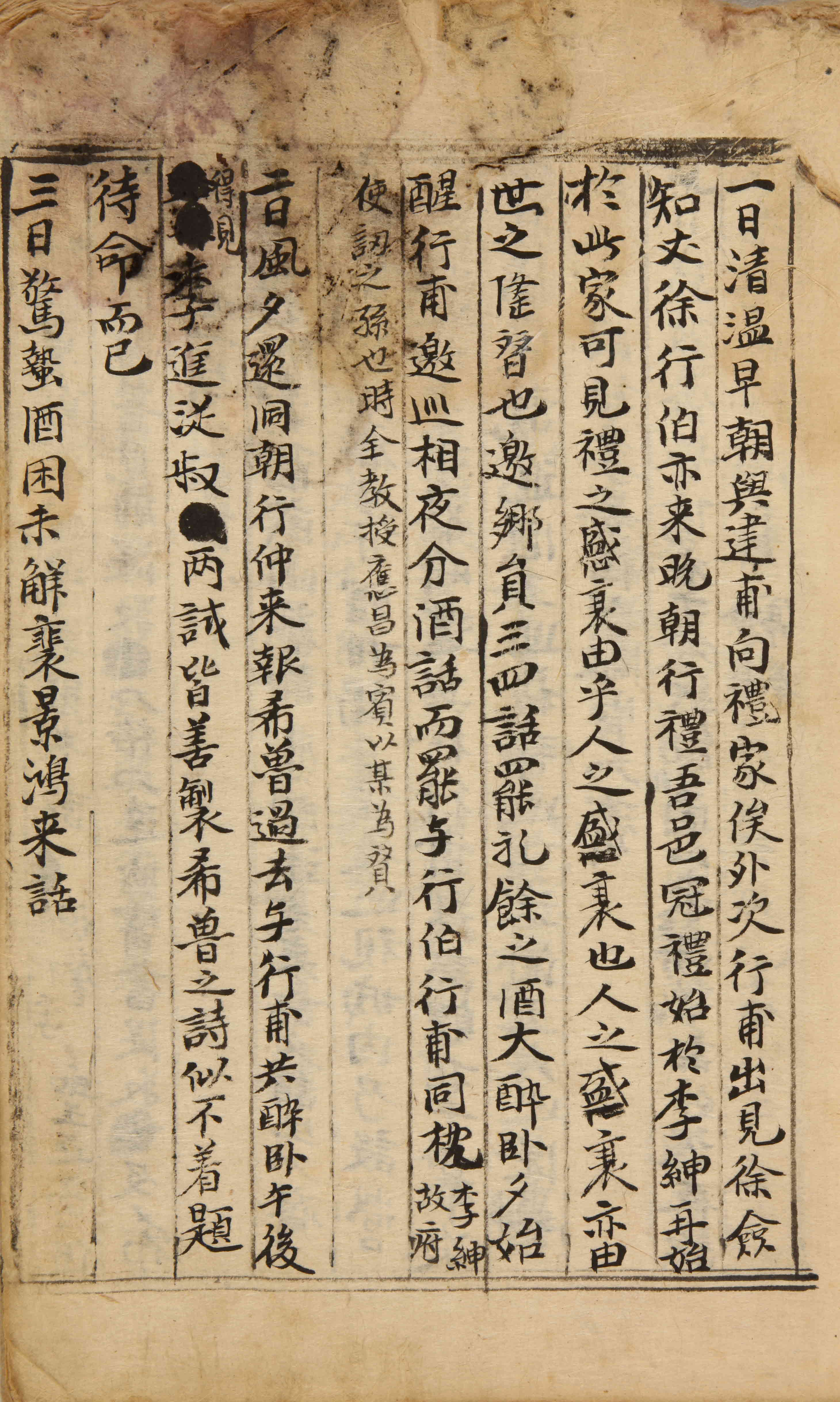 風。夕還洞。朝行仲來報希魯過去。與行甫共醉臥。午後得見季進從叔■兩試皆善製。希魯之詩似不着題。待命而已。