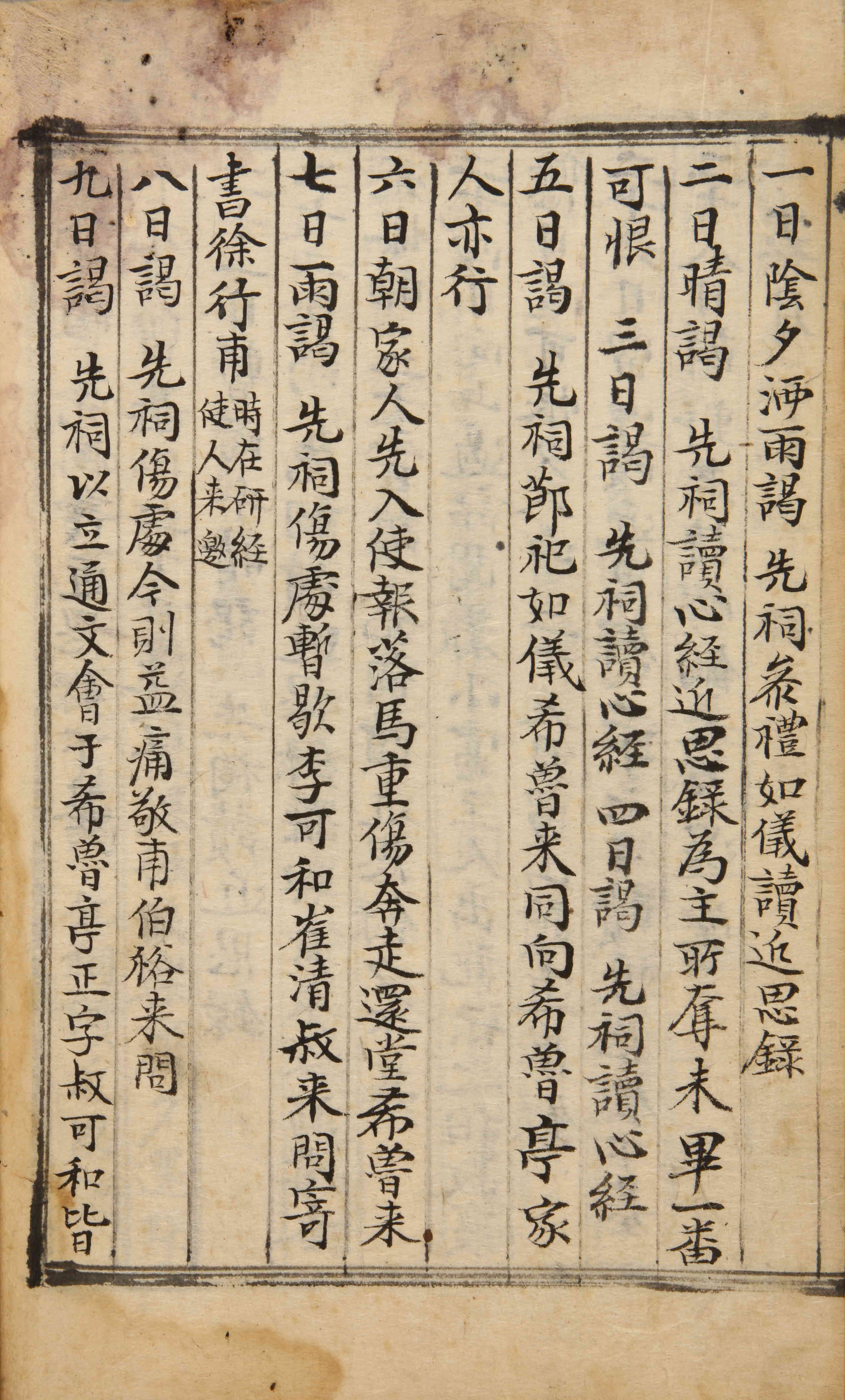 晴。謁先祠。讀心經。近思錄爲主所奪。未畢一番。可恨。