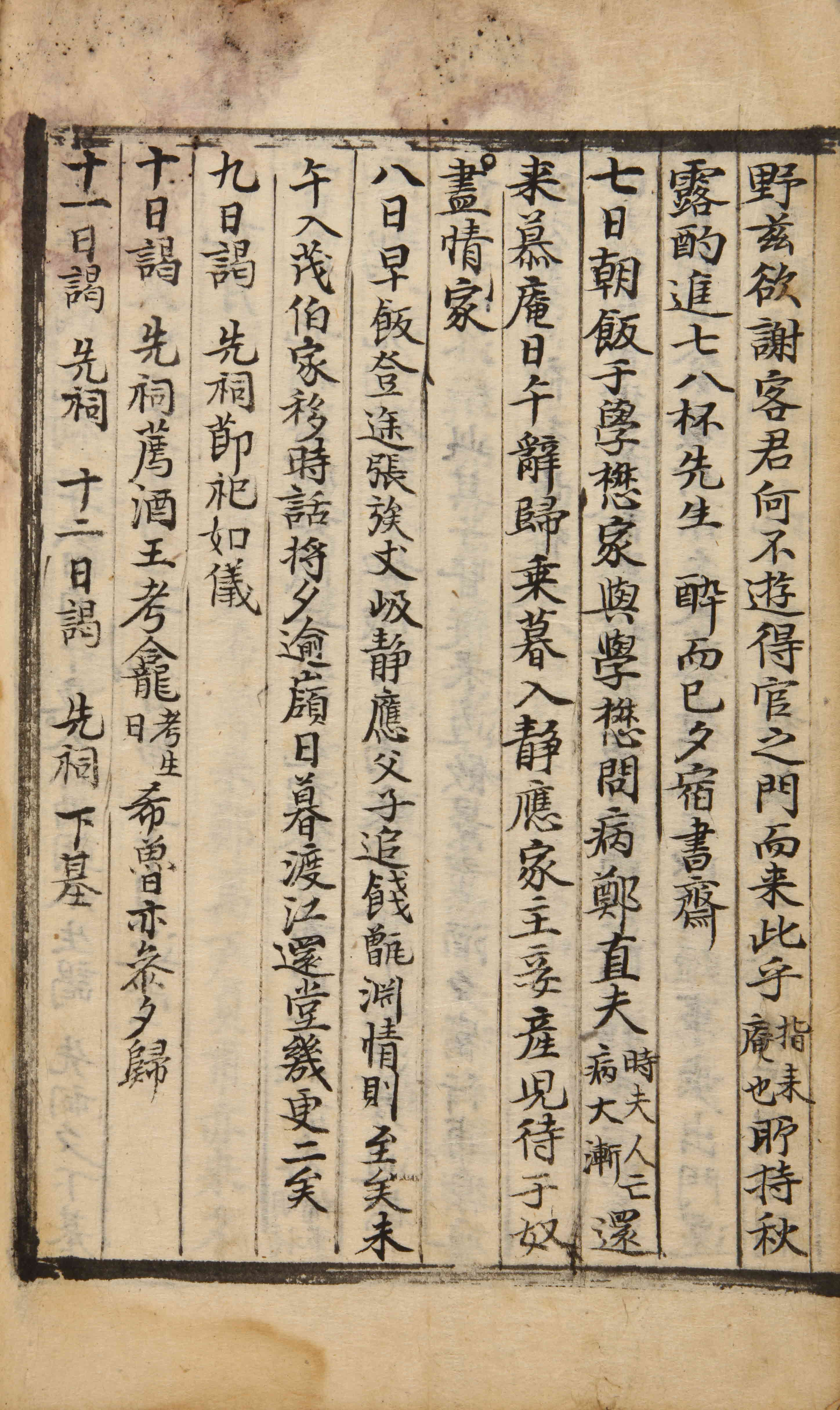학무(學懋)의 집에서 아침을 먹었다. 학무와 함께 정직부(鄭直夫)를 문병하고【이때 부인이 죽어 병이 점점 커졌다.】 모암(慕庵)에 돌아와 한낮에 인사하고 돌아갔다. 날이 저물자 정응(靜應)[채몽연(蔡夢硯)]의 집에 들어갔는데, 주첩(主妾)이 아이를 낳아 종의 집에서 정성껏 대접을 받았다.