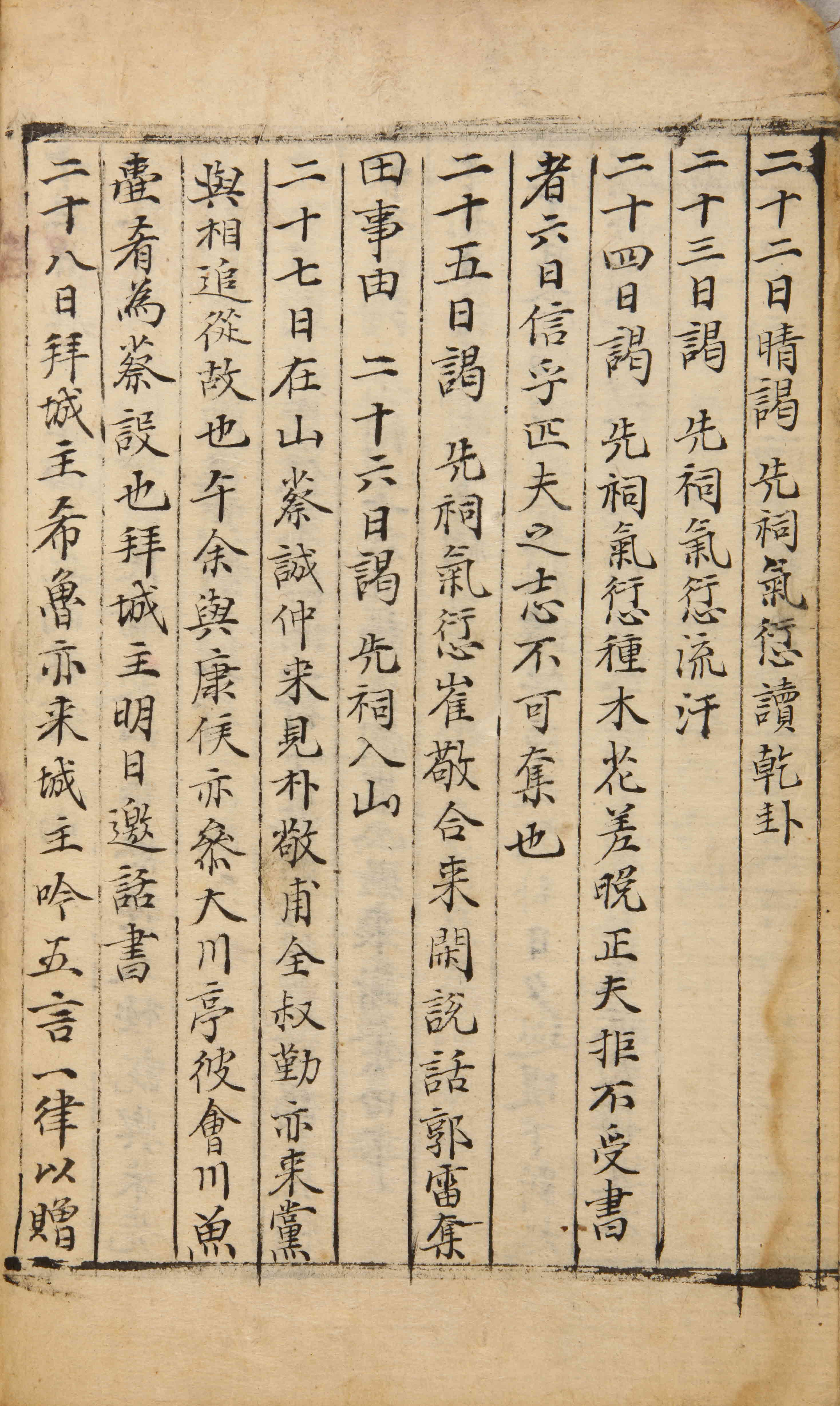 산에 있었다. 채성중(蔡誠仲)이 보러 왔다. 박경보(朴敬甫)[박유헌(朴惟憲)], 전숙근(全叔勤)[전흥업(全興業)] 또한 왔다. 당여(黨與)는 서로 추종하기 때문이었다. 낮에 나는 강후(康侯)[최흥국(崔興國)]와 대천정(大川亭)에 참석했다. 그 모임에 물고기, 술, 안주는 채(蔡)를 위해 마련한 것이었다. 성주(城主)를 뵈니 내일 만나 이야기 하자는 편지를 받았다.