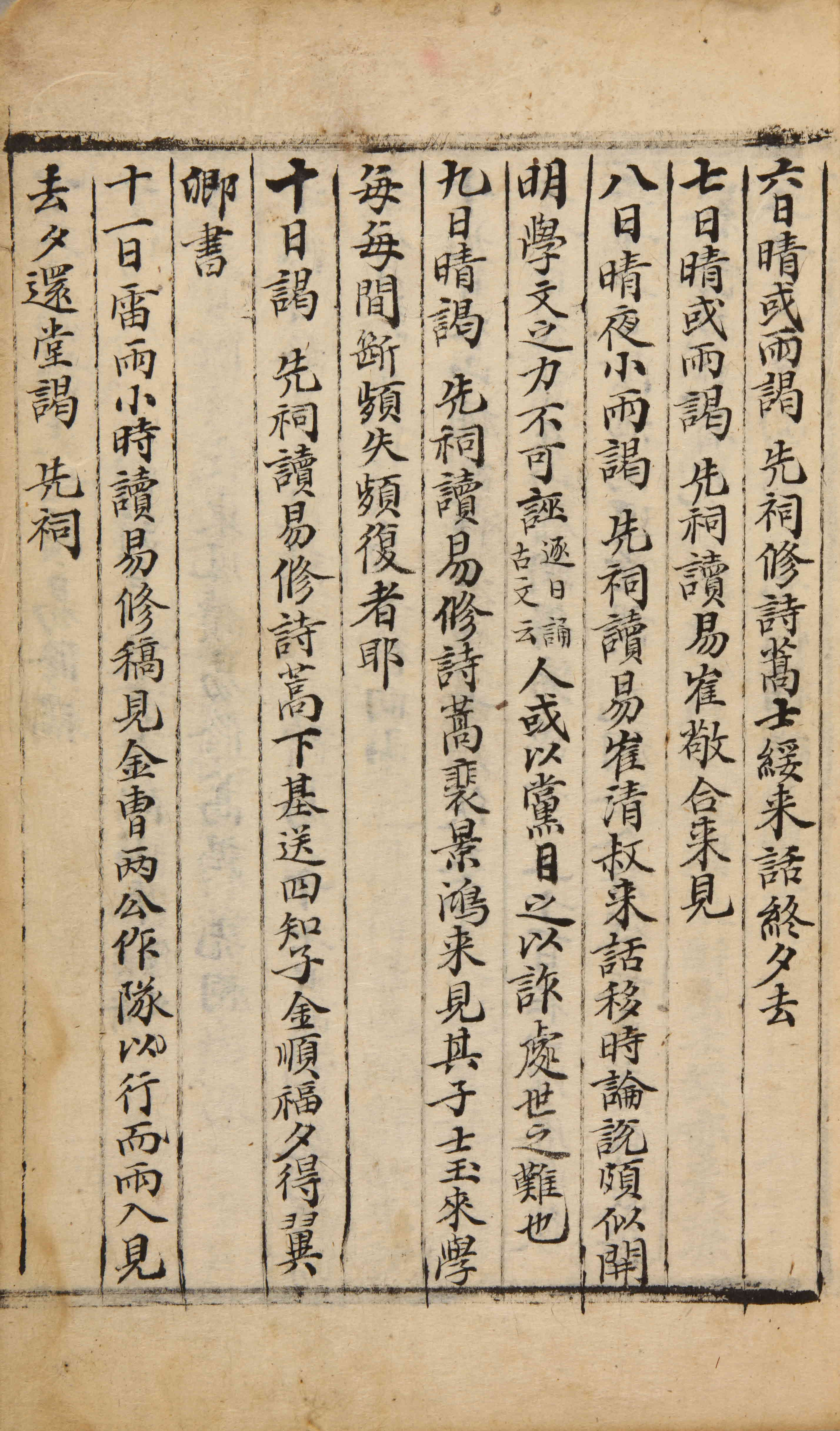 晴。謁先祠。讀易。修詩蒿。裵景鴻來見。其子士玉來學。每每間斷。頻失頻復者耶。