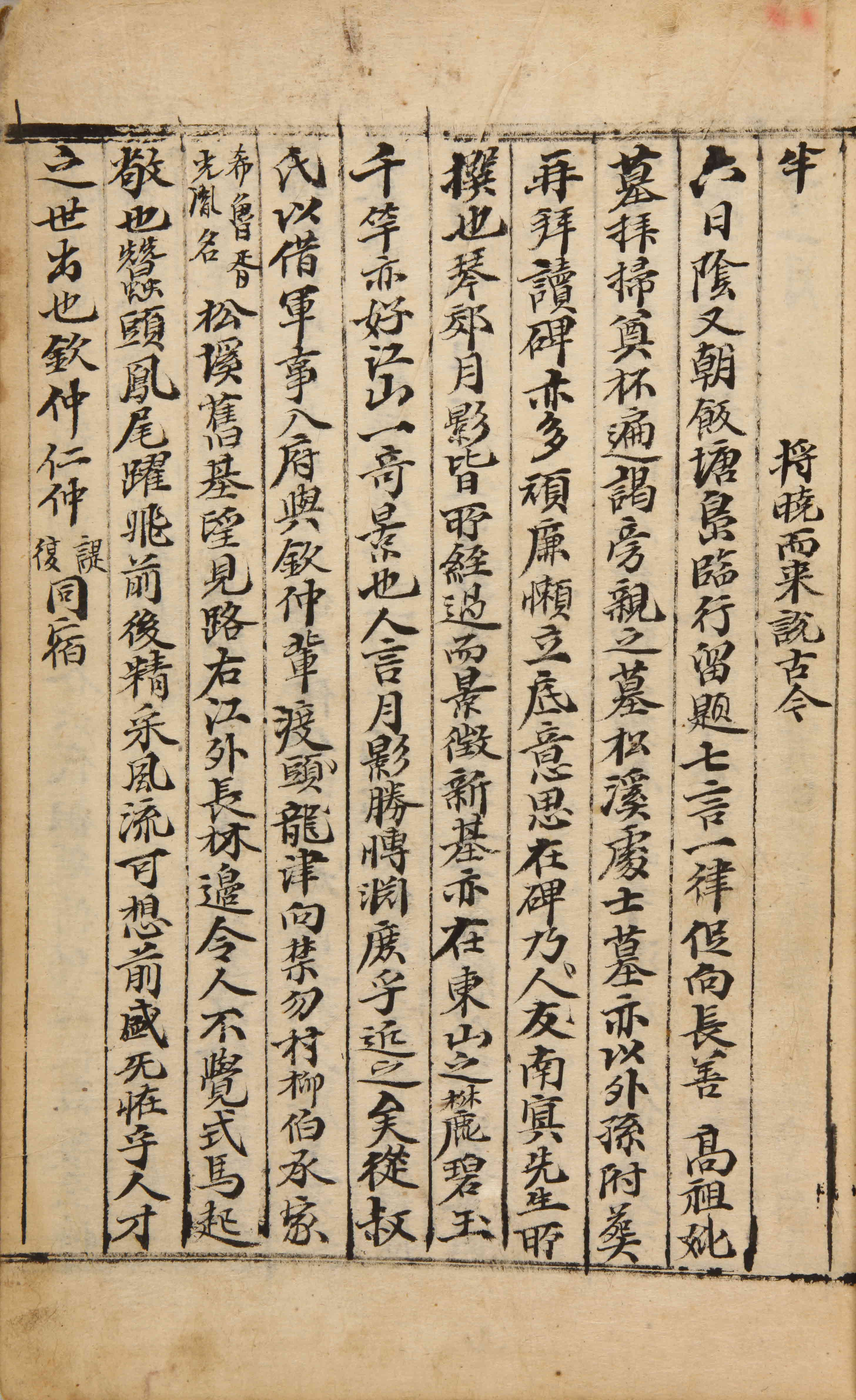 朝後先向嚴光谷先祖墓。【七代祖】再從弟諟命諟訥先待墓下。【居本府】斬木刈草。洗碑苔。立石人。强尋推究。盡得其詳。若非此碑。此墓幾於埋沒。而世系亦何連尋乎。宿草多年。始得瞻掃。一喜一悲。無以爲懷。作句文以祭之。星昏來欽仲家。坐我塘島。綠竹淸漪。繞席生寒。而主人誠意可見於酒飯之際。以窄房分枕夜半。將曉而來說古今。