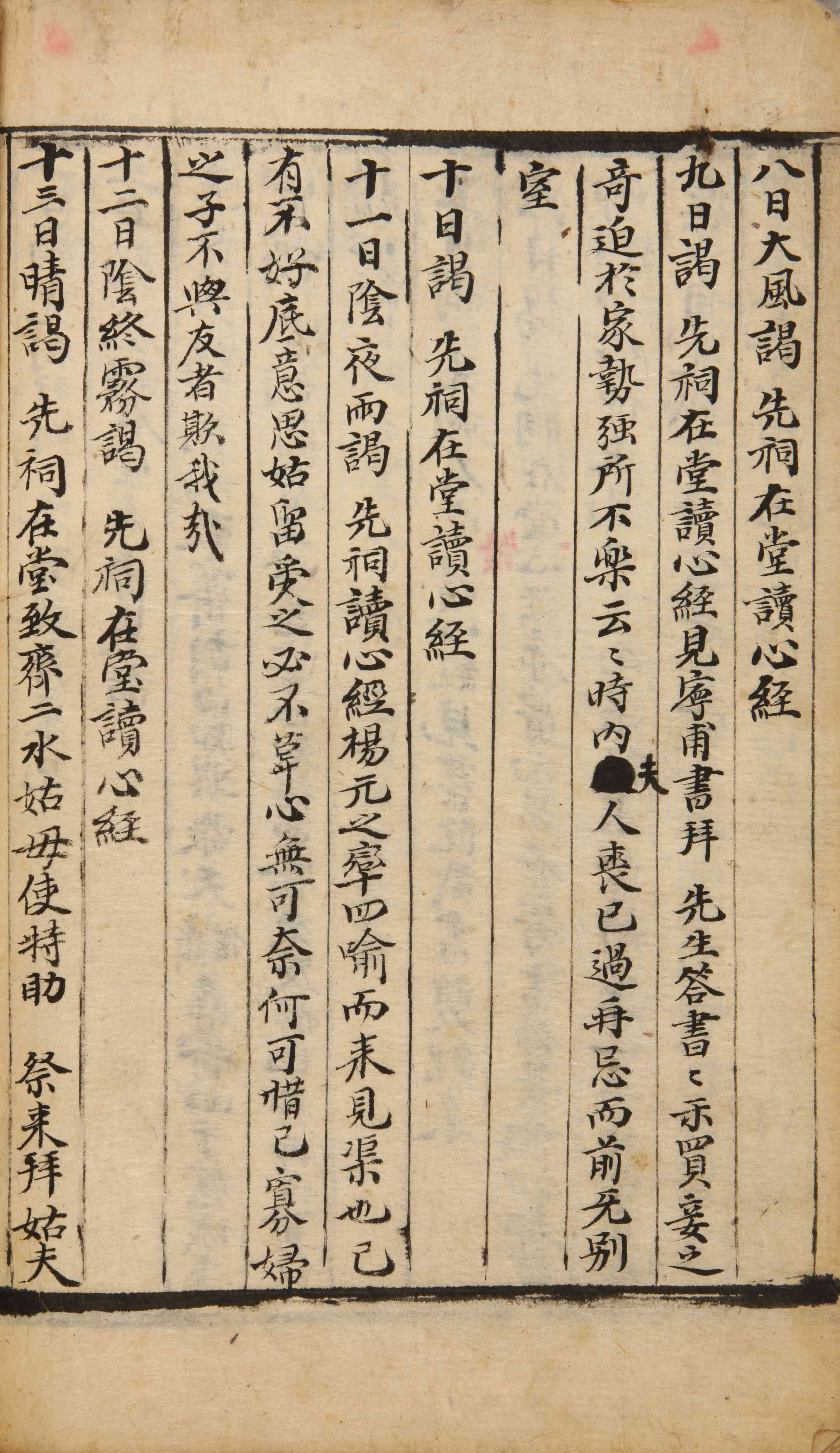 謁先祠。在堂。讀心經。見寧甫書。拜先生答書。書示買妾之奇。迫於家勢。强所不樂云云。時內夫人喪已過再忌。而前無別室。