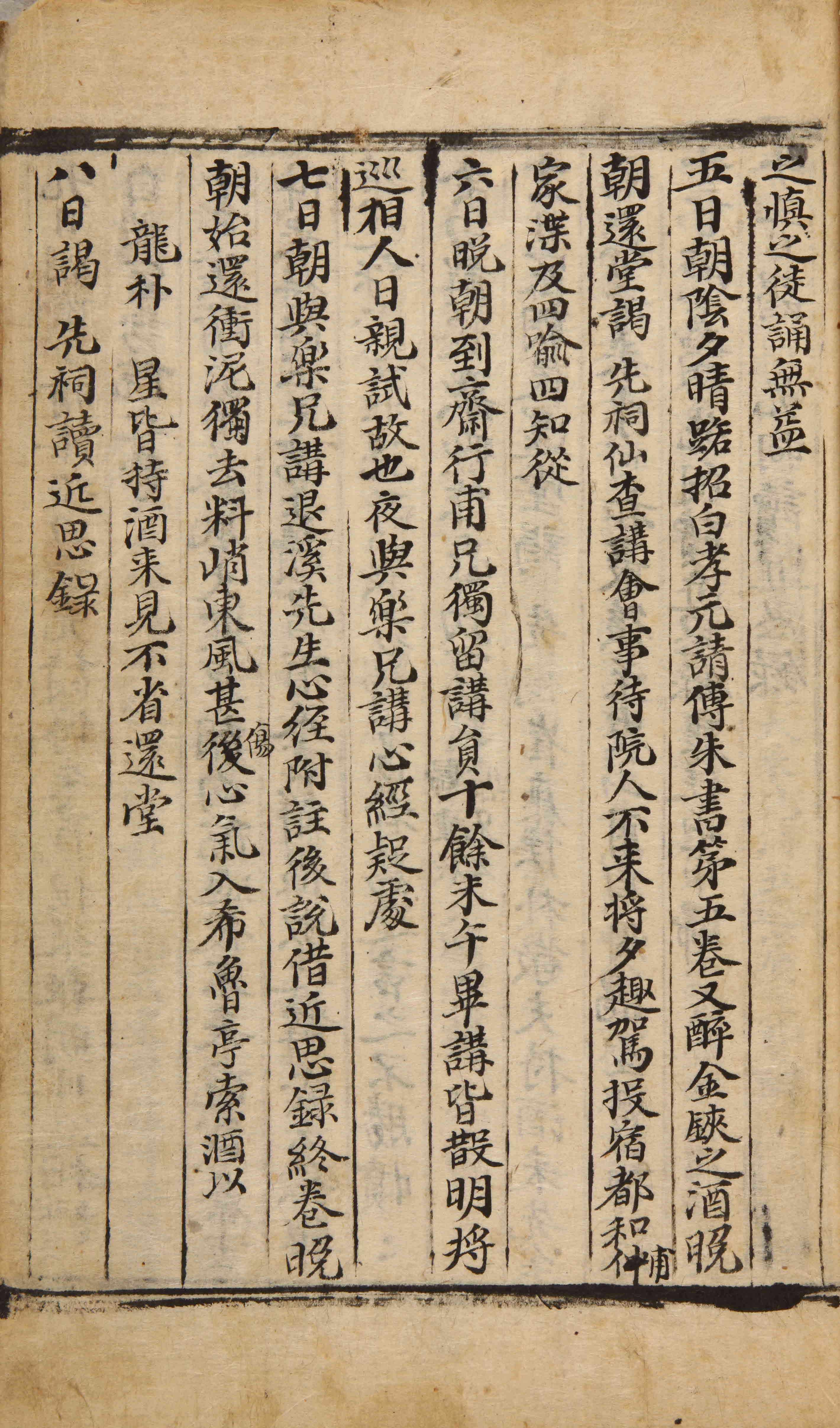 朝陰夕晴。路招白孝元。請傳朱書第五卷。又醉金鋏之酒。晩朝還堂。謁先祠。仙査講會事。待院人不來。將夕趣駕投宿都和■(仲)甫家。渫及四喩四知從。