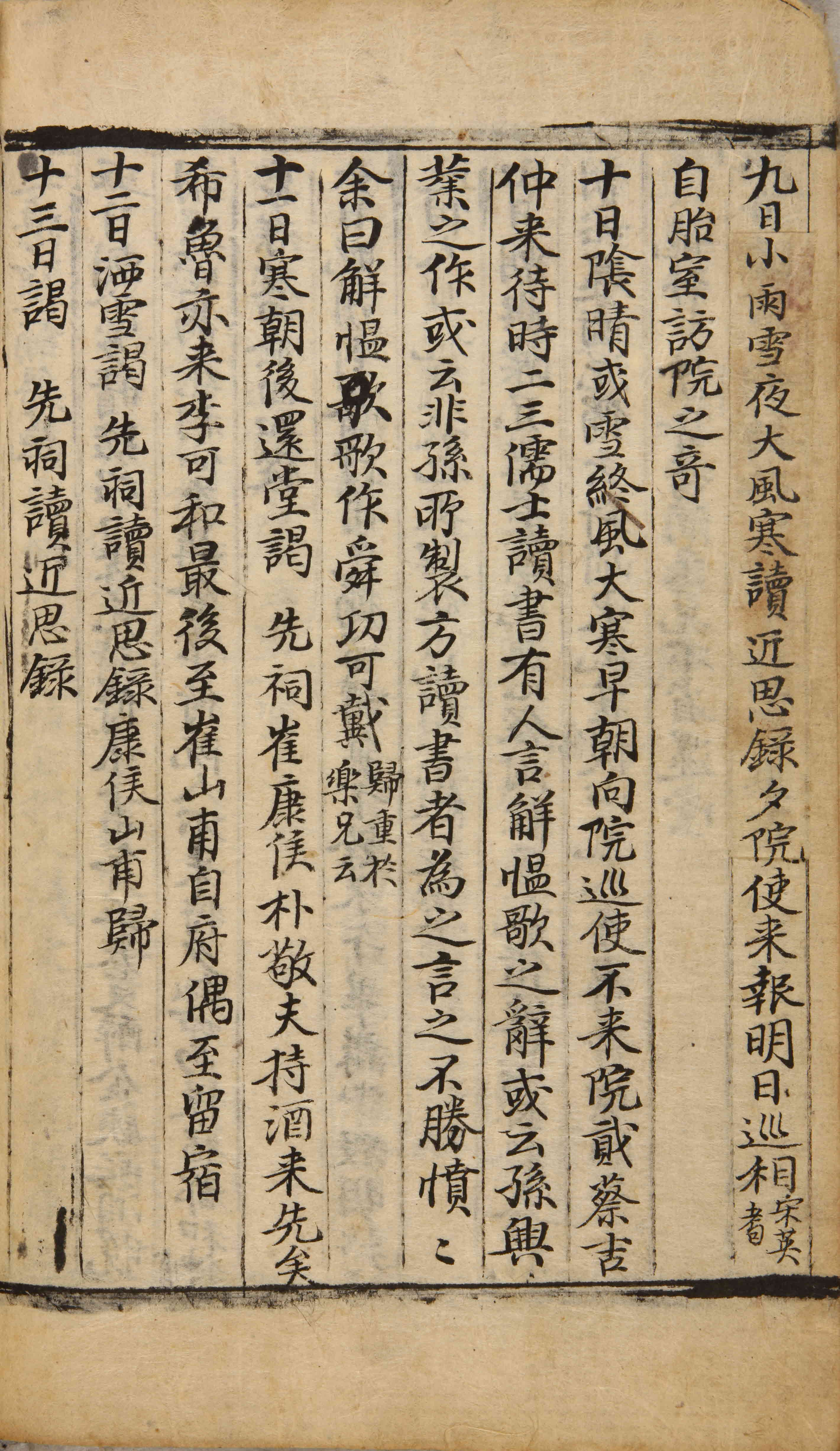 小雨雪。夜大風寒。讀近思錄。夕院使來報明日巡相【宋英耇】自胎室訪院之奇。