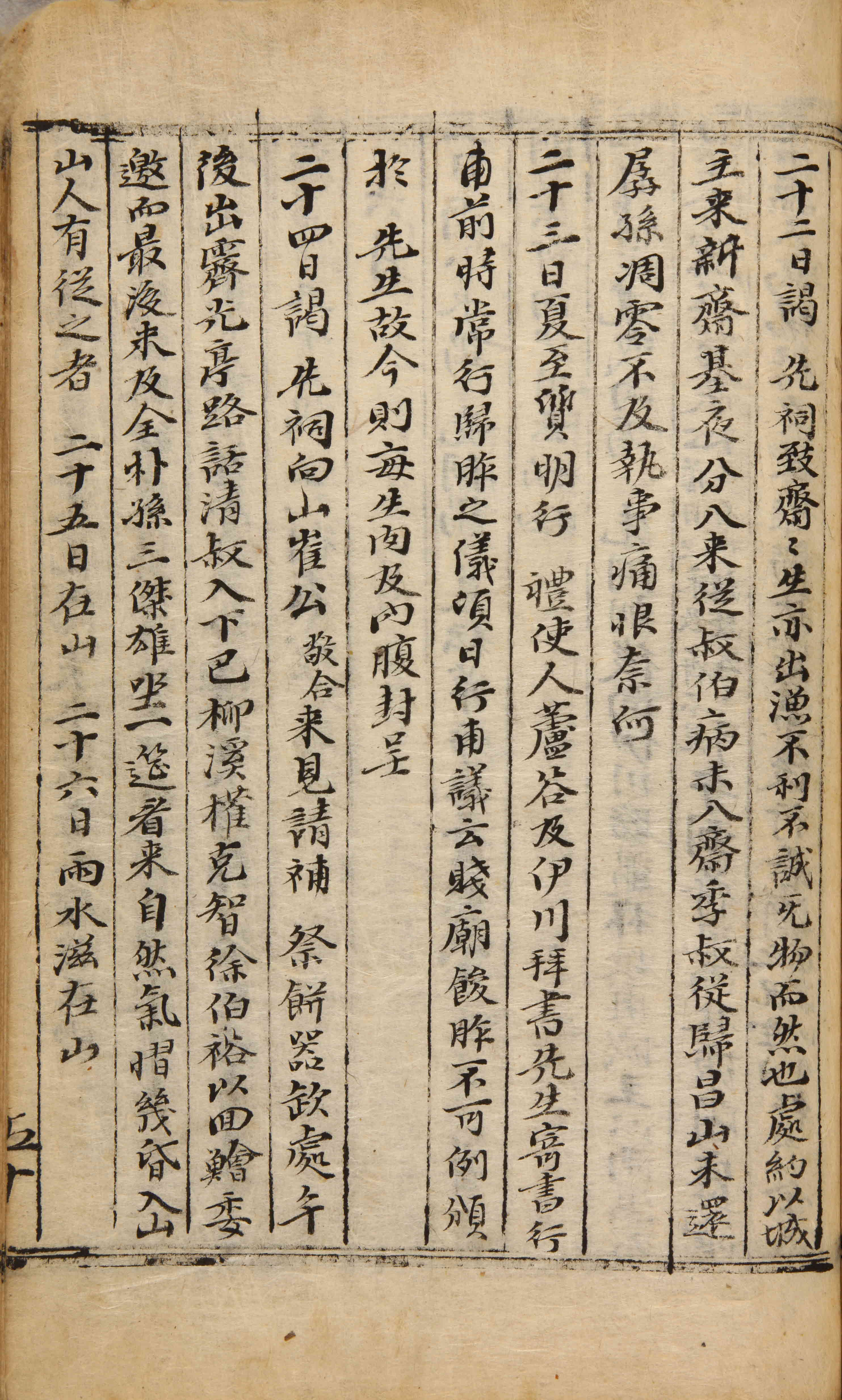 하지(夏至). 질명(質明)에 예를 행했다. 사람을 시켜 노곡(蘆谷)과 이천(伊川)에 편지를 써서 인사를 드리고 선생께 편지를 부쳤다. 행보(行甫)[서사원(徐思遠)]는 지난날 제사 지낸 음식을 빈객에게 나눠주는 의례를 항상 행하여 접때 행보와 의논하니, 사당에 제사음식을 올리고 선생께는 예(例)대로 나눌 수 없었기 때문에 이제는 매번 생육과 내장을 싸서 올리라고 했다.