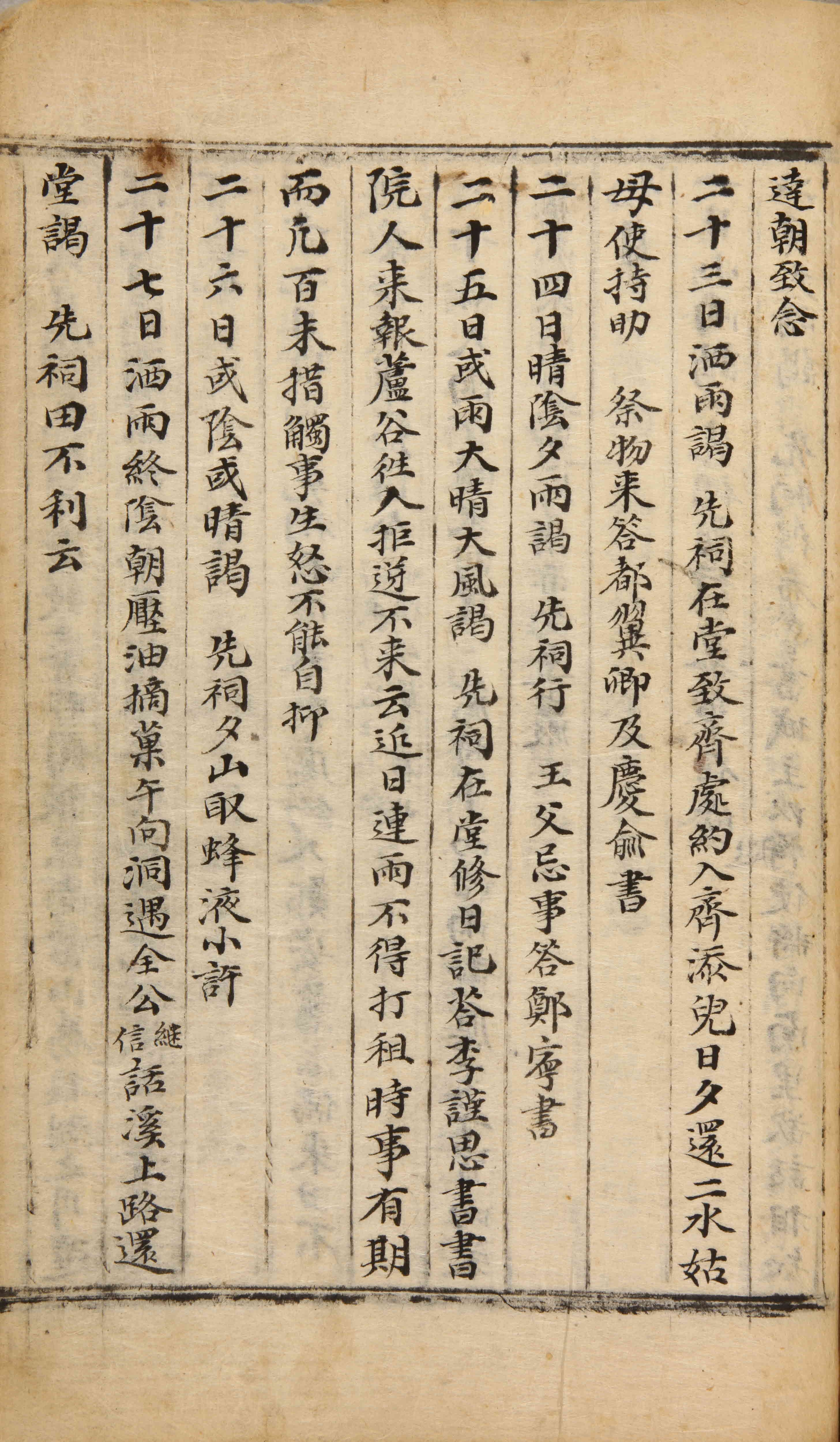 선사(先祠)에 배알했다. 당에 있었다. 치재(致齋)했다. 처약(處約)이 입재(入齋)했다. 첨 아(添兒)가 해가 저물 때 돌아왔다. 이수 고모(二水姑母)의 심부름꾼이 부조할 제물을 가지고 왔다. 도익경(都翼卿)과 경유(慶兪)에게 답장을 썼다.