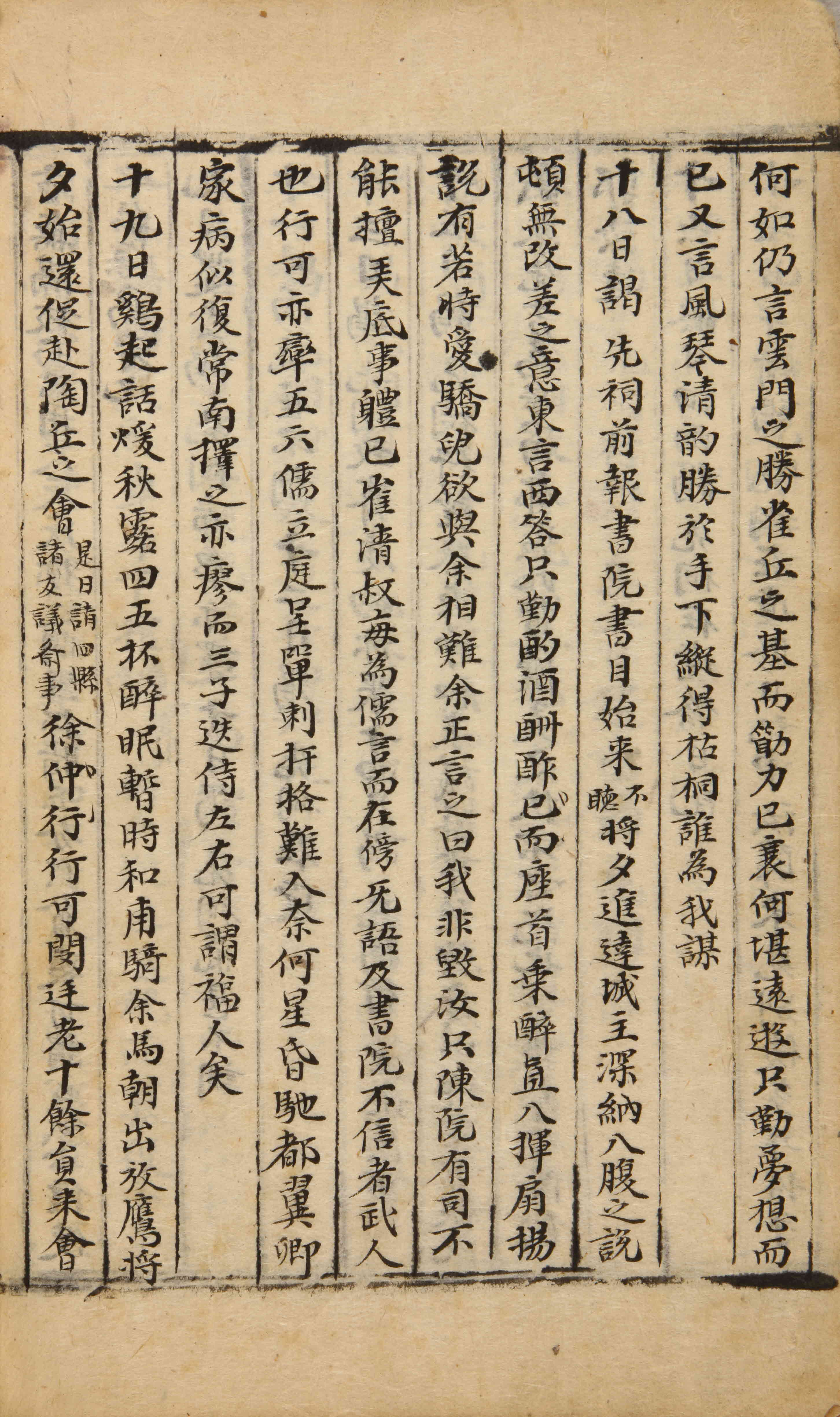 닭 우는 새벽에 일어나 이야기를 나누었다. 데운 추로주(秋露酒)를 네다섯 순배 마시고 취하여 잠시 잤다. 화보(和甫)[도언유(都彦兪)]가 나의 말을 타고 아침에 나가 매사냥[放鷹]을 하다가 저녁 무렵 비로소 돌아왔기에, 도구(陶丘)의 모임에 촉박하게 달려갔다.【이날 네 현(縣)의 여러 벗들을 초청하여 사당 짓는 일을 의논했다.】 서행중(徐行仲), 행가(行可), 민정로(閔廷老) 등 10여 회원들이 와서 모였다.