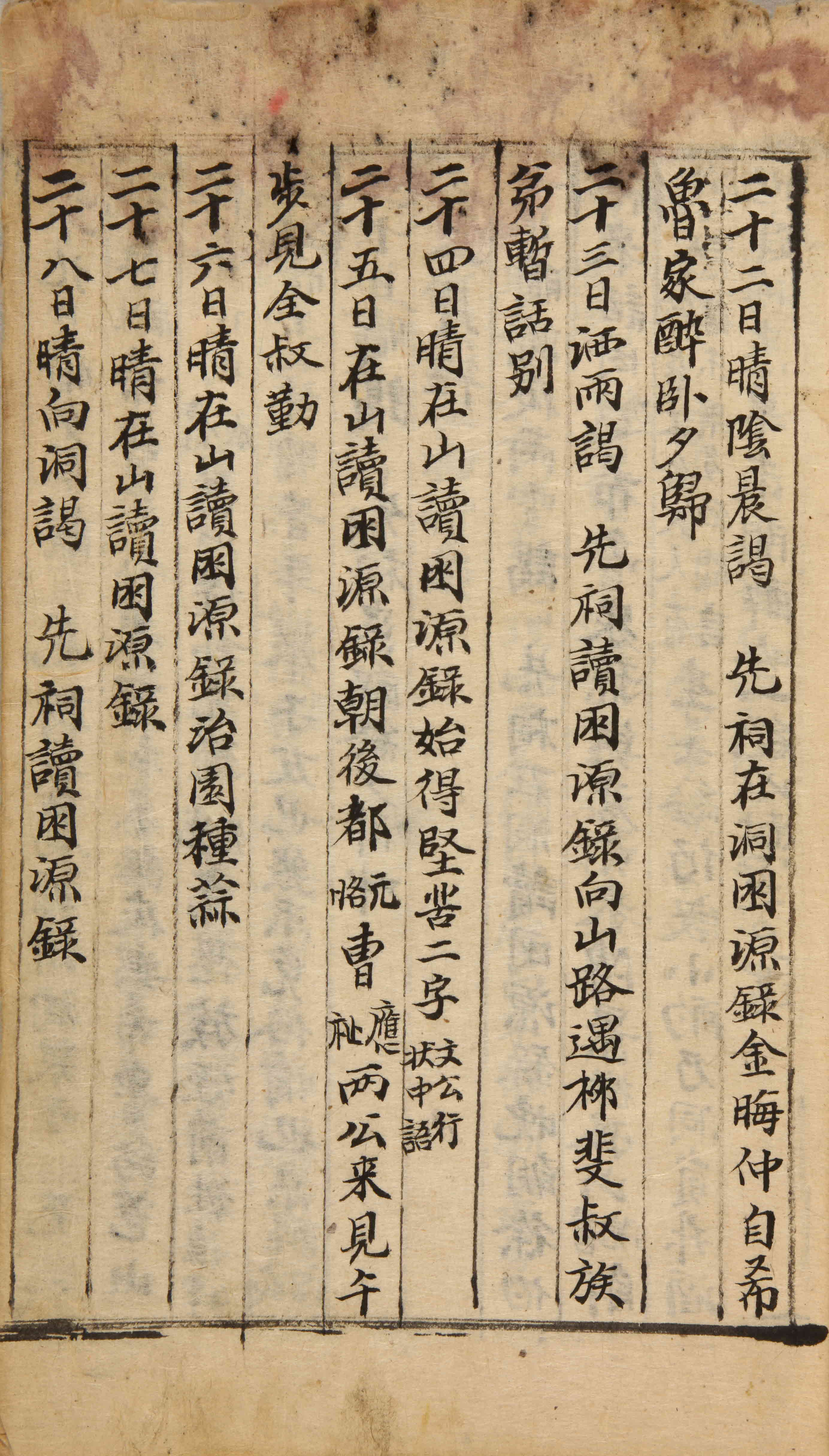 산에 있으면서 『이락연원록(伊洛淵源錄)』을 읽었다. 아침밥을 먹은 뒤에 도원각(都元恪), 조응지(曺應祉) 두 공(公)이 보러 왔다. 낮에 전숙근(全叔勤)[전흥업(全興業)]을 보러 걸어갔다.