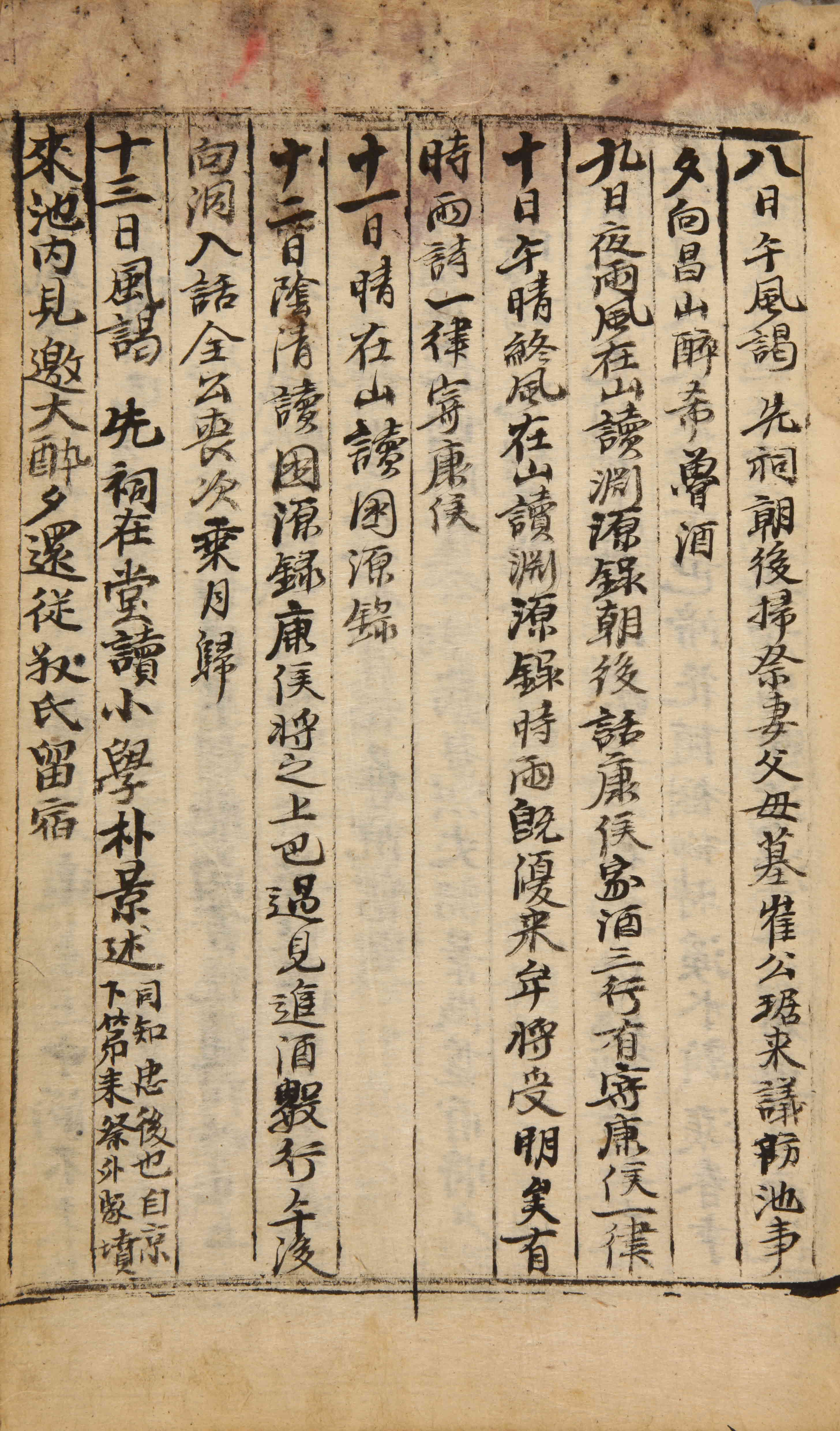 午風。謁先祠。朝後掃祭妻父母墓。崔公琚來。議防池事。夕向昌山。醉希魯酒。