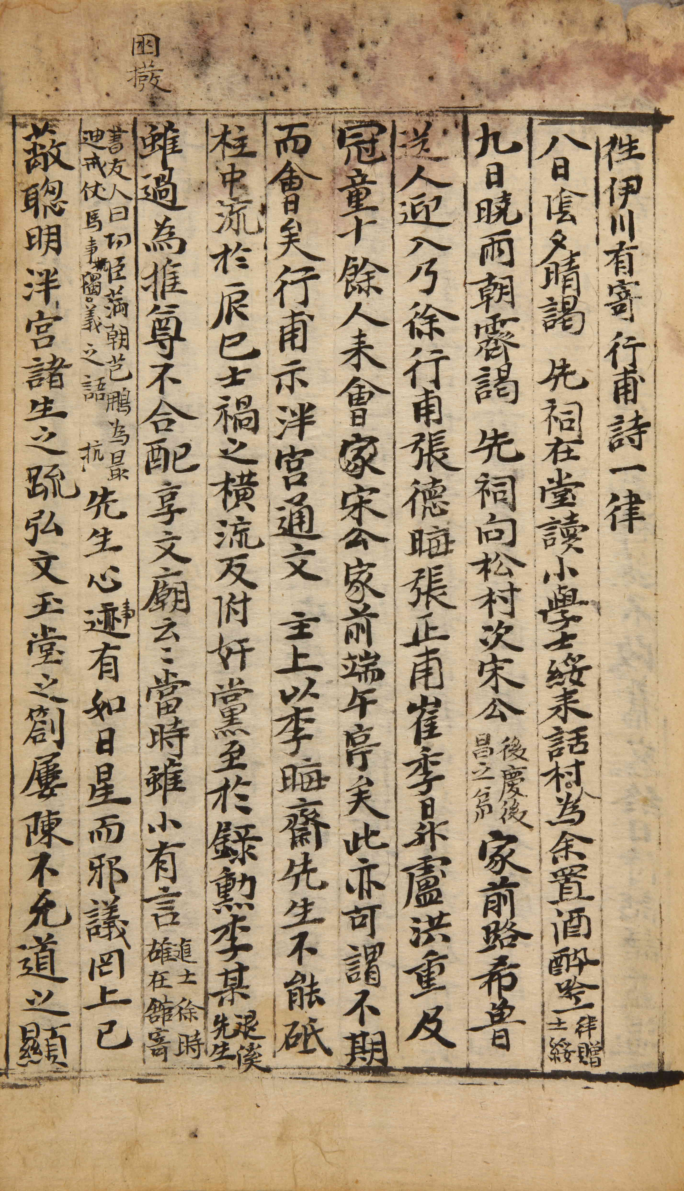 雨。謁先祠。在堂。讀小學。與希魯約向松村。【張正甫家】希魯先往伊川。有寄行甫詩一律。