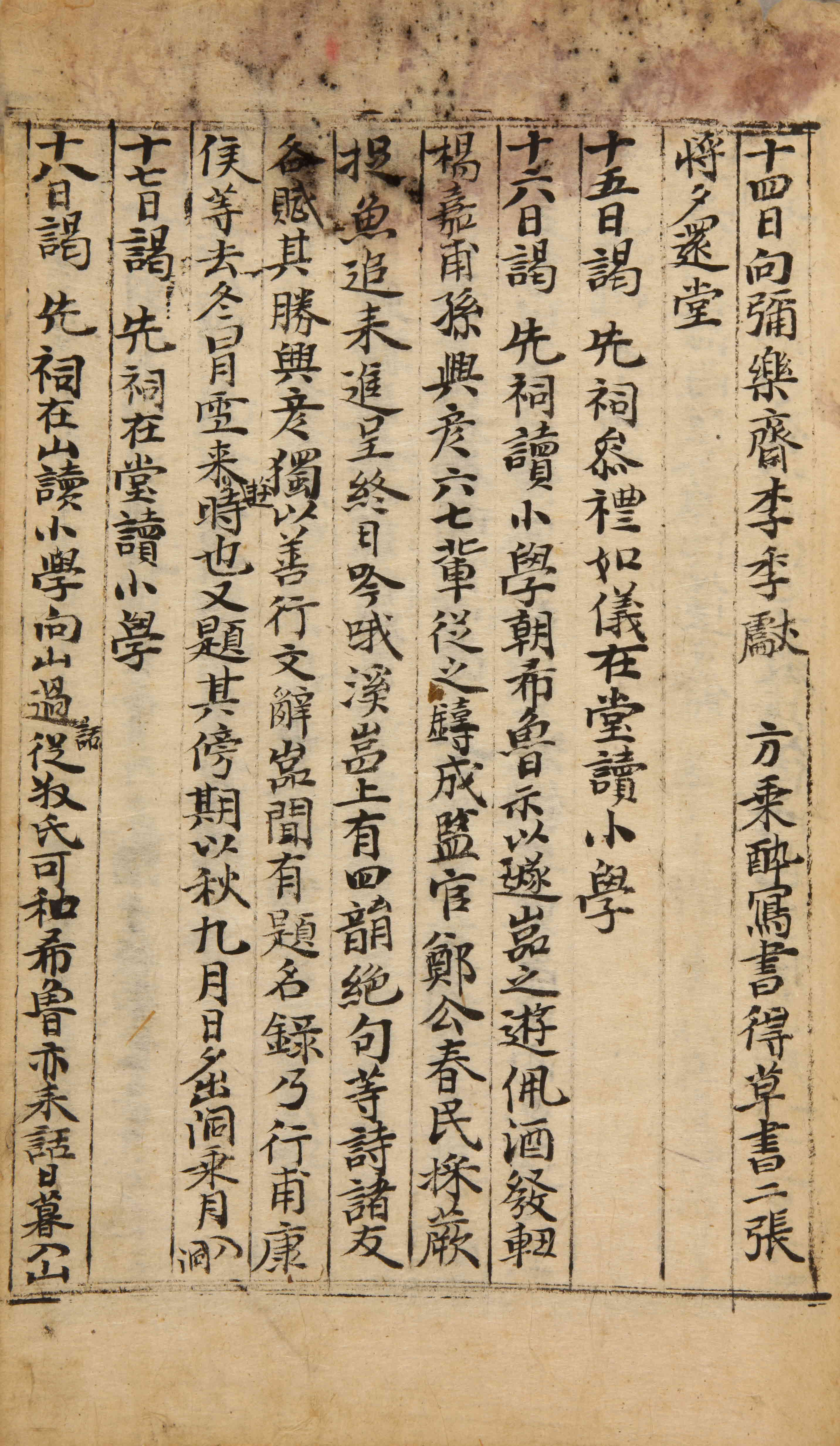 向彌樂齋。李季獻方乘醉寫書。得草書二張。將夕還堂。
