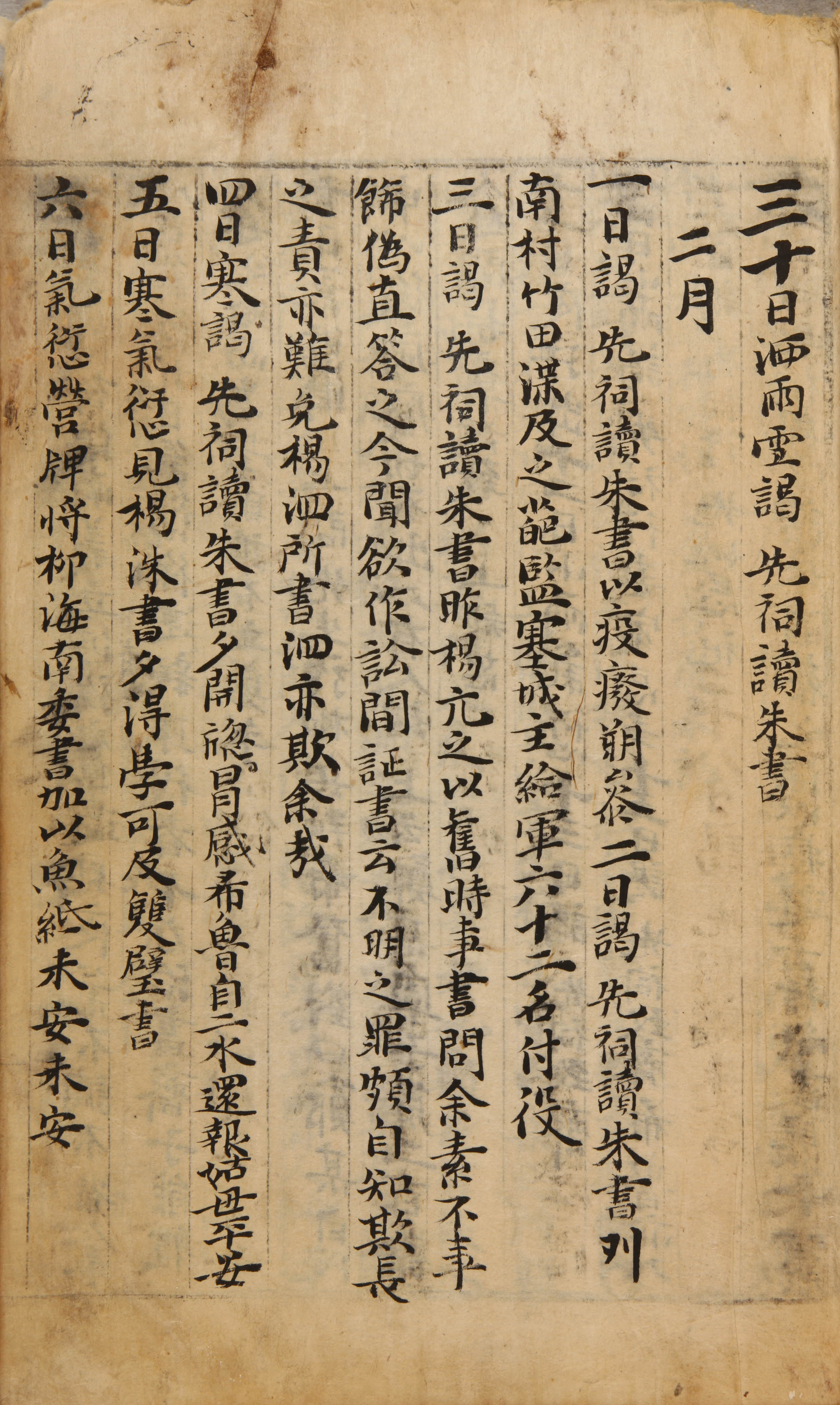 寒。謁先祠。讀朱書。夕開牕感冒。希魯自二水還。報姑母平安。