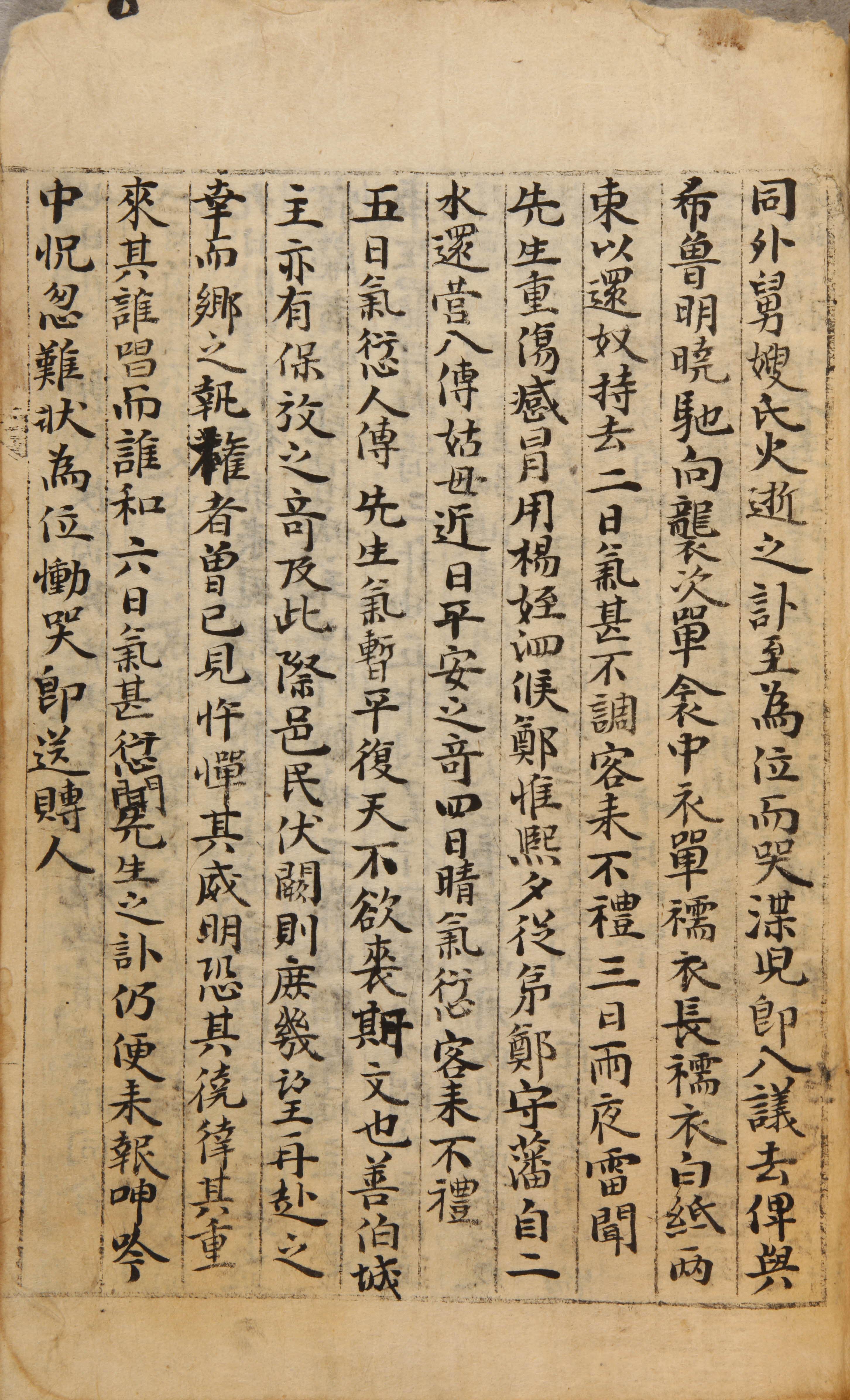 氣甚不調。使處約攝行朔參。日晏。始謁先祠。還臥。日午。提督叔入謁先祠。聞善伯城主。有解獄之奇。夕仁同外舅嫂氏火逝之訃至。爲位而哭。渫兒卽入議去。俾與希魯明曉馳向襲次。單衾中衣單襦衣長襦衣白紙兩束。以還奴持去。