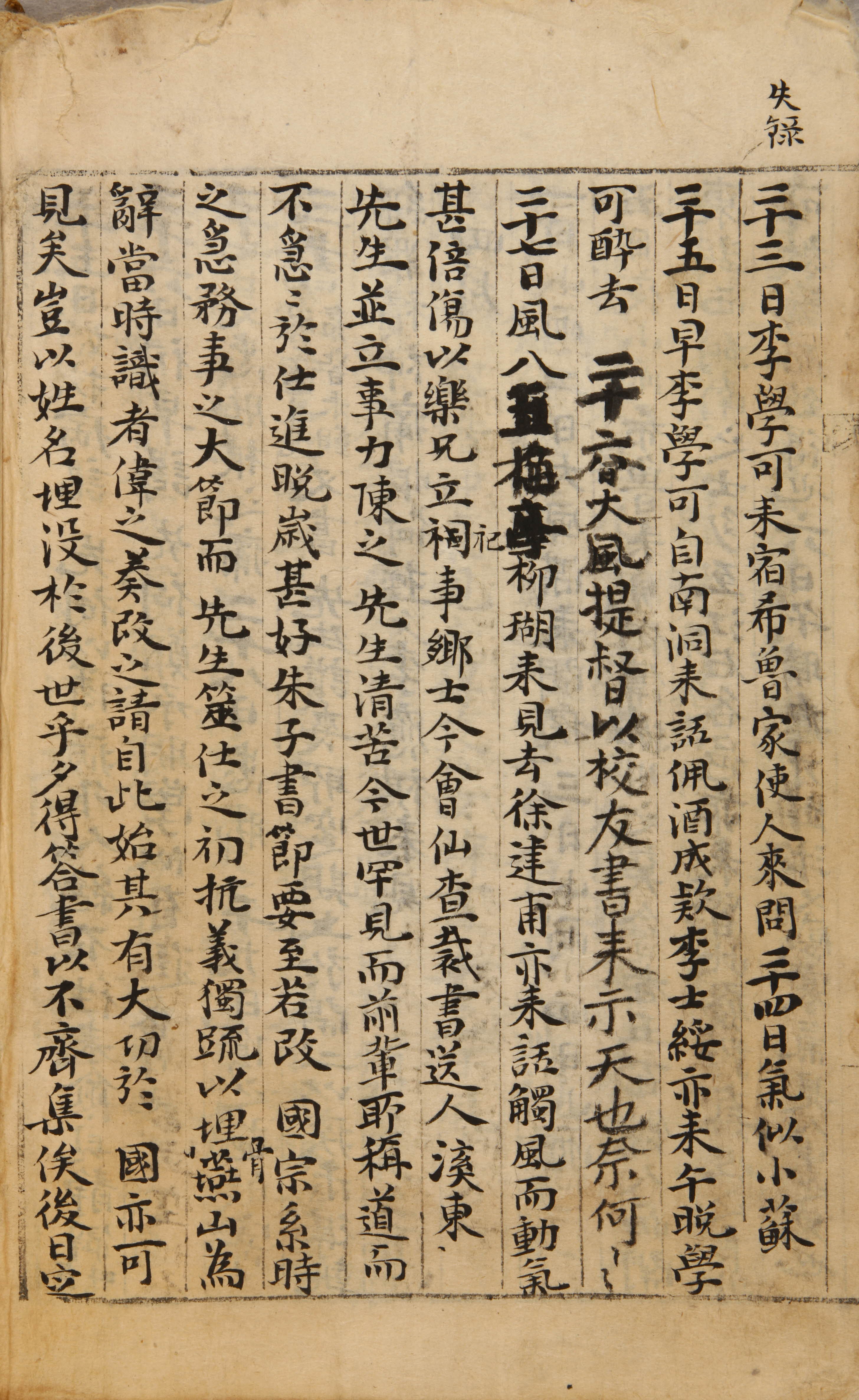 風。入五梅亭。柳瑚來見去。徐建甫亦來話。觸風而動。氣甚倍傷。以樂兄立■(祠)祀事。鄕士今會仙査。裁書送人。溪東先生竝立事力陳之。先生淸苦。今世罕見。而前輩所稱道。而不急急於仕進。晩歲甚好朱子書節要。至若改國宗系。時之急務。事之大節。而先生筮仕之初。抗義獨疏。以埋骨燕山爲辭。當時識者偉之。奏改之請。自此始。其有大功於國。亦可見矣。豈以姓名埋沒於後世乎。夕得答書。以不齊集。俟後日定議云。