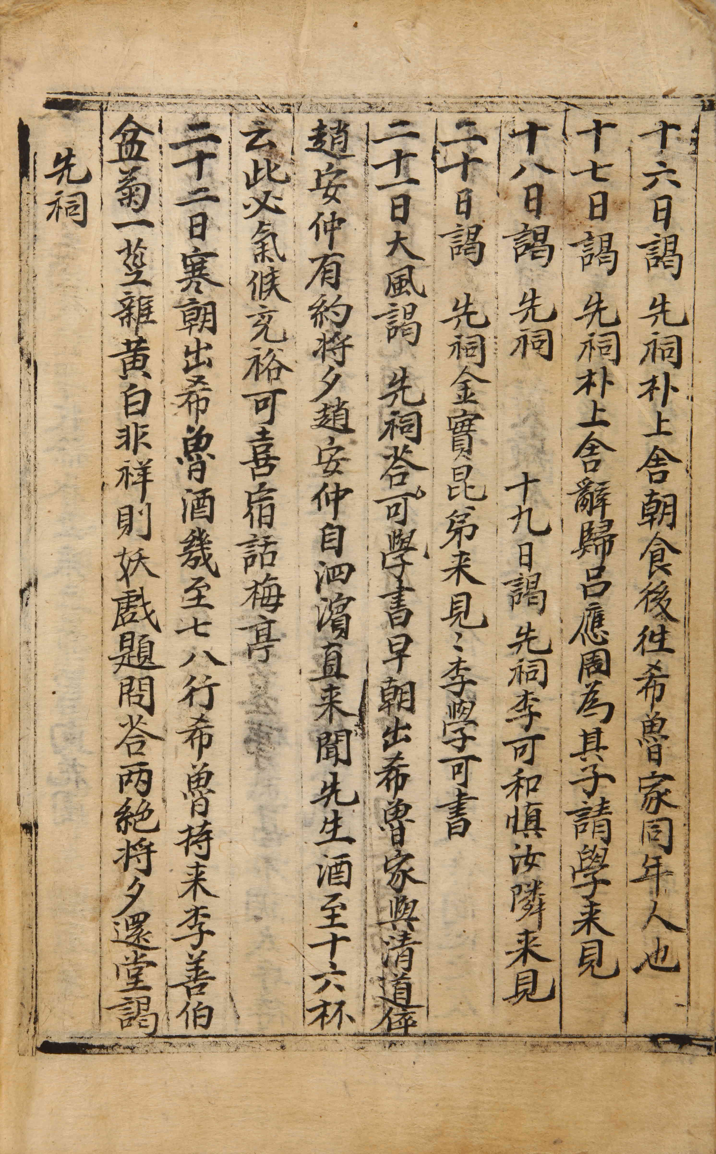 大風。謁先祠。答學可書。早朝出希魯家。與淸道倅趙安仲有約。將夕趙安仲自泗濱直來。聞先生酒至十六杯云。此必氣候充裕。可喜。宿話梅亭。