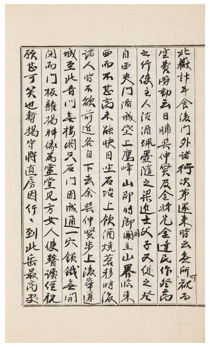 晴。客地重陽。古人所懷。況念家廟節薦應設。而未能與祭。任使病嫂穉侄。罪竦尤深於客懷。仲賢要與登高。而昨日告止。從叔主無聊獨坐。而吾則登覽拂除。又一不安。要俟諸丈入來。有話伴後。爲買酒登北嶽計耳。食後門外諸行次第還來。皆云無所可觀。而空費勞動云。日晡。與仲賢及金姊兄金達民作登高之行。使主人沽酒。珮壺隨之。梁進士父子又從之。登自西夾門。循城垈。上鷹峰山。卽時御■(闕)闕主山界。臨東西而不甚高。未能快目。坐石坮上。飮酒燒茗。移時後諸人皆不欲前進。各自下去。余與仲賢步上後峯。遵城至北靑門。無樓閣。只石門因城通一穴。鎖鐵無開閉。而門板雜揭神像爲靈堂。見方女人使瞽讀經祝願。甚可笑也。暫揭守將直房因行。行到北岳最高處。心若怵危。不能久坐。此蓋爲舊闕正主。而臨處正中。四方均闊。眞主基也。傍見時闕。宮墻內無遮。而偏寄一邊。似不及舊基。不啻萬里。甚可恨嘆。飮茗後周覽四方。東極原春界。南列冠岳諸峯。環拱竦立。西望大海。如白雲堆。北顧三角。來龍削立森嚴。而一帶漢水彎弓四抱。卽一大觀。慮日力。遂下至彰義門。回仰履歷所來處。直是削壁。還却疎懍。始就坦路。由宮墻後路入館。不甚暮。可幸。夕後風雷大作。夜深後雨下如注。而雷聲動城。令人震懍。此何兆像。非偶然。憂嘆憂嘆。