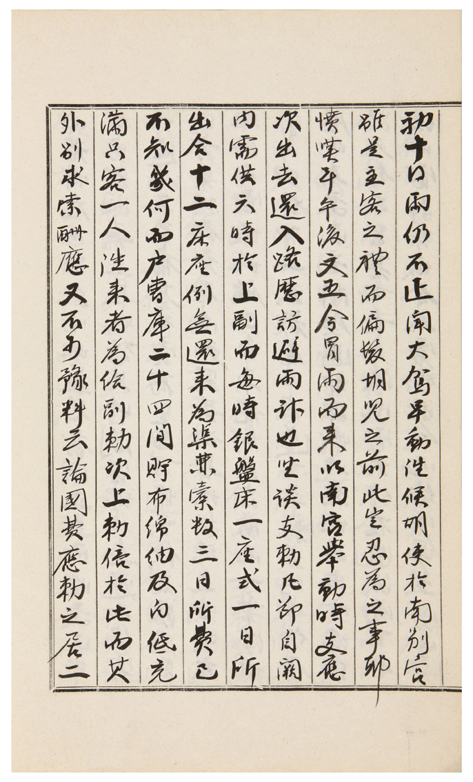 雨仍不止。聞大駕早動。往候胡使於南別宮。雖是主客之禮。而偏髮胡兒之前。此豈忍爲之事耶。憤嘆耳。午後。文五令冒雨而來。以南宮擧動時。支應次。出去還入路歷訪。避雨計也。坐談支勅凡節。自闕內需供六時於上副。而每時銀盤床一座式。一日所出。合十二床座。例無還來。爲渠囊槖。數三日所費。已不知幾何。而戶曹庫二十四間。貯布綿紬及白紙充滿。只客一人往來者。爲給副勅次上勅倍於此。而其外別求索酬應。又不可豫料云。論國費應勅之居二者有以也。渠所賻來者。銀盃三事。祭甁一座。香燭幾雙。奠需次銀三千兩外。更無他件云耳。受弔時則自公卿下至罷散官。皆入哭於殯殿庭下後。更於他所宣受玉冊禮。而儀節未知如何耳。河上柳進士居齋者。見李而述丈謂情談。而愚川台向見大院君。問屛山事何以爲之。則大院郡所答。何不少俟云云者。似有慮繼發之狀。臨川疏儒暫爲下去。似好。而述丈曰。旣來矣。何可無所事而下去耶云云。述丈來傳其言曰。此必見大院君亦知臨院儒生留連之事。則其幷入於屛院言論可知。若然則與屛山成否或同歸耶。屛山斷無不成之理。則又不能無幸望云云。此丈略料事者。而或不誤見耶。