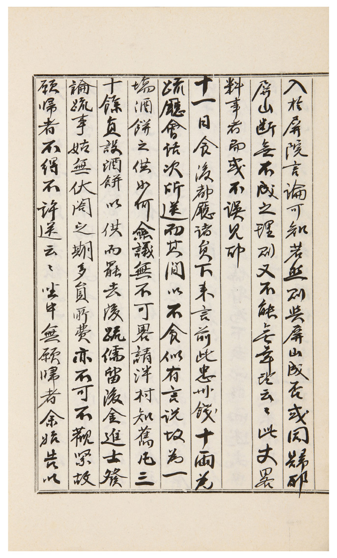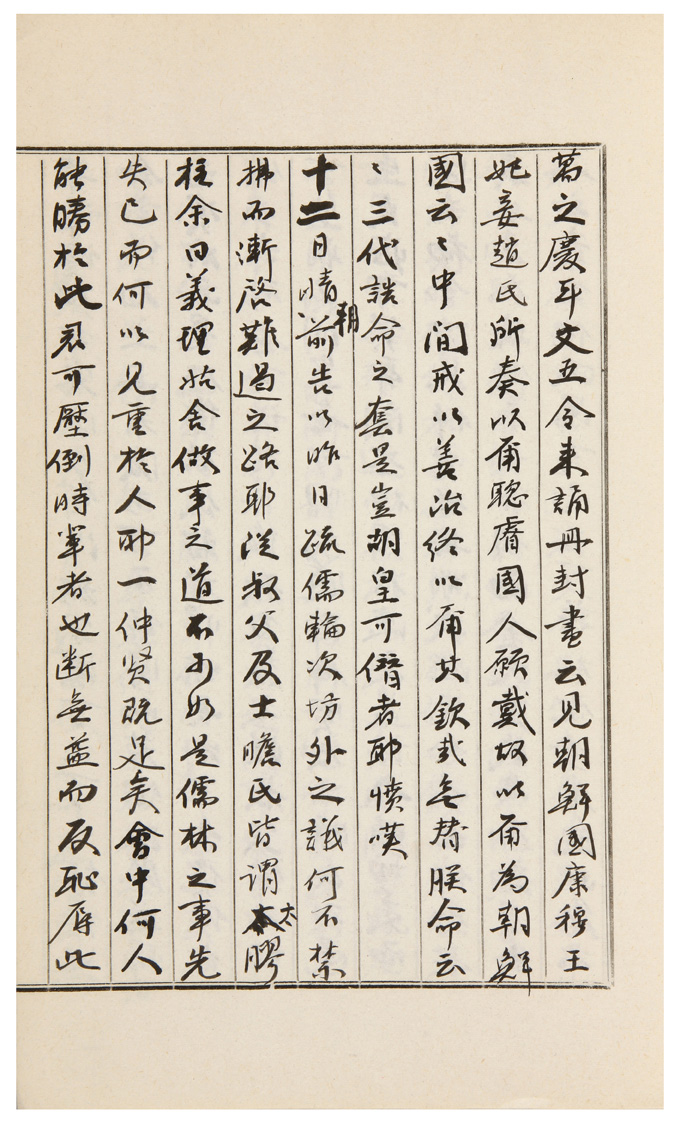 食後。都廳諸員下來。言前此忠州錢十兩。爲疏廳會話次所送。而其間以不食。似有言說。故爲一場酒餠之供。如何。僉議無不可。略請泮村知舊凡三十餘員。設酒餠以供而罷去後。疏儒留後。金進士發論疏事。姑無伏閤之期。多員所費。亦不可不觀緊。故願歸者。不得不許送云云。坐中無願歸者。余始告以無益於事。而私情不得不先歸。今此諸員。皆有家事代任之人。而吾之所處座中之所共知。若無一員許歸之事。則不敢自■我生意。而旣有簡送之令。則事情無如我之切迫者。請得許。文若曰。兄則萬不可先去者。而只爲阻遏他人。使不得送歸一員。更勿開口也。諸員一辭不使發言。從叔父又甚不可於意。悚惶而止。然要俟從兄上來後。爲斷定計耳。仲賢出見吳校理。謂待勅擾治送後。乘間言之。而歷路有李參奉云者。曾所見托者。入問則言。日前往告以臨川疏儒連月留待。極爲悶然云。則大院丈答以屛山姑未得施行。而豈可先出耶。故不敢更言云云。洽是屛儒項中出。蓋此人家。亦以緊路爲一邊人。朝夕問安之所。安知非從中弄術耶。是不可知。若果實有此言。則不激而順聽。與已成命之屛院。爲較先後則也。是非大敗事耳。俄間座上。又有疏儒輪次往來於知舊。爲緊懇動得之議。從叔父又不可否。心伏悶恨。而不欲橫斷長者之論。故默不與議而過。胡勅見大殿相宇大贊云。壽可九十而九年連豊云。若非浮言。則東方億萬之慶耳。文五令來誦冊封書云。見朝鮮國康穆王妃妾趙氏所奏。以爾聰睿。國人願戴。故以爾爲朝鮮國云云。中間戒以善治。終以爾其欽哉。無替朕命云云。三代誥命之套。是豈胡皇可僭者耶。憤嘆。