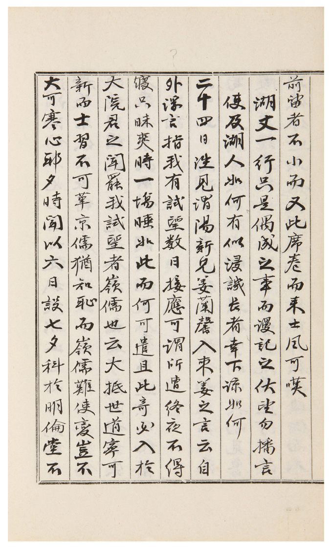 雨。湖丈入來。盖犯昏宿旅舍而來云。尤爲苟且。姜蘭馨頗不冷落酬酢。與仲賢時小異。而見魯陵疏草。讀畢欽嘆。而云俟隙言于大院君。然何可信耶。使伻送文集一帙。湖丈已言給故耳。嶺儒塡街。而入前留者不小。而又此席卷而來。士風可嘆。湖丈一行。只是偶成之事。而謾記之。伏望勿播言使及湖人如何。有似浸譏長者。幸下諒如何。