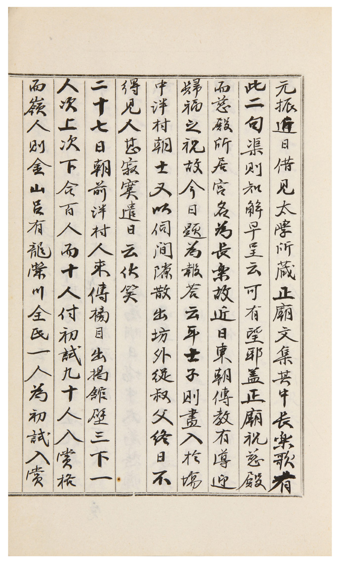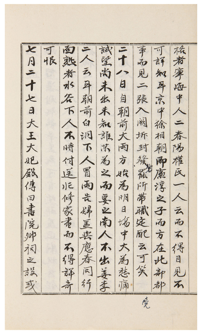 朝前泮村人來。傳榜目出揭館壁。三下一人。次上次下合百人。而十人付初試。九十人入賞格。而嶺人則金山呂有龍榮川全氏一人爲初試。入賞格者。寧海中人二春陽權氏一人云。而不得目見。不可詳知耳。京中徐相朝。卽廉淳之子。而方在北部都事。而見二張入闕坼封發覺。罷所帶職定配云。可笑。