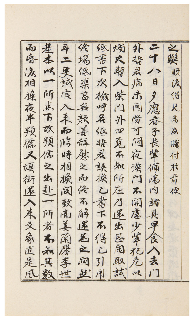 夕應春子長輩。備場內諸具。早食入去。門外哲君。病未同勞。可悶。夜深門不開。慮少輩犯危。以燭火。暫入柴門外四覓。不知所在。乃還出甚閑。取試紙書。下次檢呼名紙。哲君誤換。已書下。不得已引用終場紙。渠甚無顔。善辭慰之。而終不解還。爲之悶然耳。二更試官入來。而臨時相換。閔致商姜蘭馨李世基。本以一所点下。故頖儒之出赴一所者。不知其數。而昏後相換。夜半頖儒。又塡街。還入來。爻象直是風盪水沸。可笑。而湖丈仲賢輩。亦不免越去越來。大不滿人意耳。