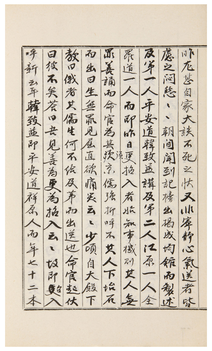 晴。早朝陪從叔父。往洪進士丈。頰額浮氣。比昨尤甚。自家大談不死之狀。又非寧靜心氣。送者皆慮之。悶愁悶愁。朝間聞到記榜出揭成均館。而製述及第一人。平安道韓致益。講及第二人。江原一人全羅道一人。而卽昨日更招入者。始知事機。則其人無罪善誦。而命官爲其■(須)須京儒强抑呼不。其人下坮石而出曰。生無罪見屈。直欲痛哭云云。少頃。自大殿下敎曰。俄者其儒生。何不給及第而出送也。命官起伏曰。彼不矣。答曰。吾見善爲。更爲招入云云。故卽召入呼新云耳。韓致益卽平安道祥原人。而年七十二。本不來參科者。而其子留京。適見到記設試。以在家之其父名。代入製呈。而被選後。方走人爲邀來之計。而忽有入侍之令。其子不得已自白。卽爲充軍定配。科變中尤者也。其子之罪。可勝誅哉。夕間尋黃同甫館。見方草策。而自云。生來初手。不習格例。謂是過謙。看所作。似不是餙辭。居在遐鄕。以若才具。不習時文。亦可尙也。傍有詩軸。不免洛下風習。而此則其居鄕舊。尙非慕效紫陌之套。而暫貢戱語。似有知悔意。還悚耳。