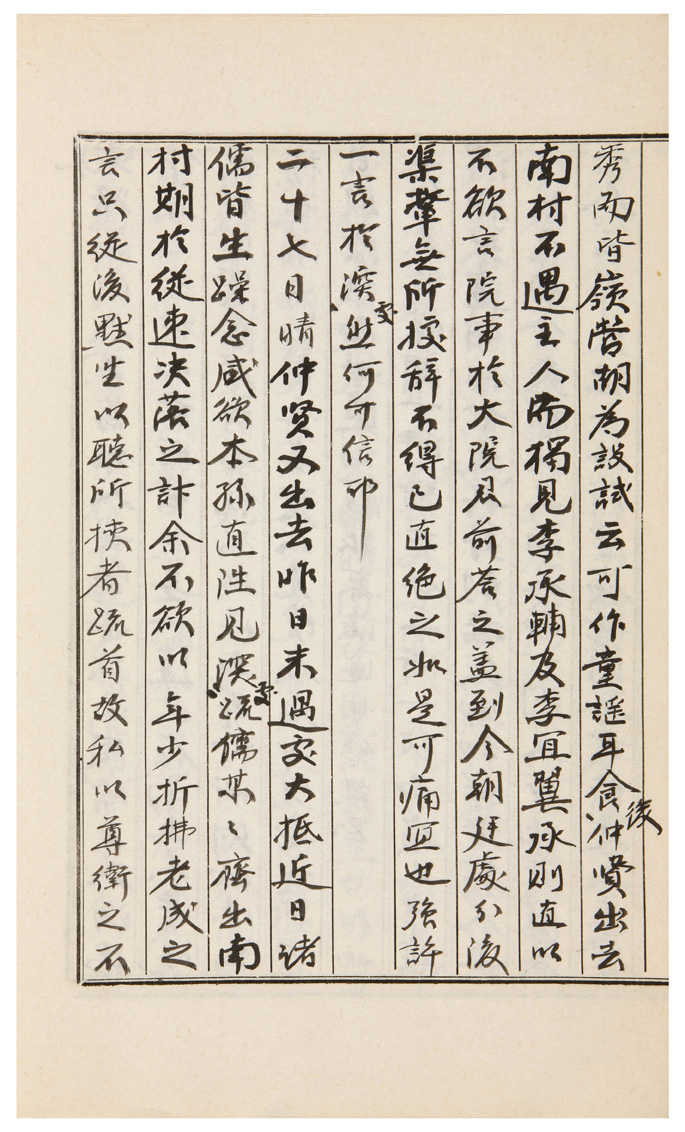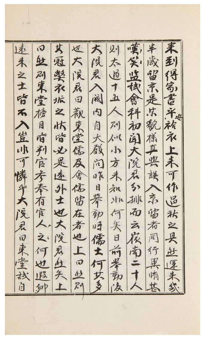晴。仲賢又出去昨日未遇處。大抵近日諸儒皆生躁念。咸欲本孫直往見深處。疏儒某某齊出南村。期於從速決落之計。余不欲以年少折拂老成之言。只從後默坐以聽。所挾者疏首。故私以尊衛之不可非道言之。而從叔父不武。不能嚴斥。本孫亦無定執諸人。似已知之。故言論之際。隱目指意如高調。何用於爲大事。及若然則讀書於鄕家之說。何爲上來營事之言。雖不專名攻之。而似有隱歸處。還覺可畏耳。諸儒終日來議如是而罷。然數件事從叔父雖不武。而必不許。吾見則雖今日罷歸。斷知不可一再上口之事。諸言似不得見售耳。夕時仲賢入來。只見姜蘭馨。姜言屛山事近又有不成之慮。何可更以此事激之耶云云。蓋自他人聞之。則大院君必欲毁撤書院。而滿朝所見。無一合同。物情大忷。故不得已自止。而於書院字。輒生激怒。故雖河上本孫之日問安者。不敢以屛山事仰問。如何云。若然則謹悉似無可得之路。奈何。吾意則爲先發文太學。請謹悉以觀動靜。而僉議必欲探知大院君之意。向後爲之。亦不可知耳。然事之無關於大義者。只從長者處決耳。聞義城官馬爲邀其令來。方觀會試。故有順歸。空馬貰甚歇。權天經多病。難於寒節。念意欲勸送。而自家意欲成否。間同去就。故一元爲乘去其馬計耳。昏後臨川伻來到。得家書平安。袷衣上來。可作過秋之具。然運來幾半歲留京。是某貌樣。直與誤入京留者。同行異情。甚笑嘆。監試會科初聞大院君分排而云。嶺南二十人則太過。十五人則似小。方未知如何矣。日前擧動後。大院君入闕內。自大殿問。昨日擧動時。儒士何其多也。大院君曰。觀東堂儒及會儒留在者也。上曰。然則其冠弊衣垢之狀。皆必是遠外士也。大院君然矣。上曰。然則東堂榜目皆判官參奉有官之人。何也。遐鄕遠來之士皆不入。豈非可憐乎。大院君曰。東堂試自古例以門地取選。故如是矣。上曰。然則進士會試皆給遠儒。如何。大院君不得已仰答甚好而出。始若有感回之意。欲用公■之計。而姑未快決云。可恨。若使大院君因此善端。開導其心。如齊王之見牛。則其效豈止於一鮮治而已耶。可痛可痛。丹城梁進士周汝者率其子。入者來處隅室。而其子童蒙年僅十五。而貌相絶妙。見其安詳沈黙。誠可敎之孺子可愛。且成就早成。試券能自筆云。尤奇。耳目習於家間豚犬。故此等兒每不遇見耳。錦伯物故。代閔致九爲之云。後聞辛檍以西原縣監【卽靑爲降革】卽其地拜道伯。以大院君妹夫故也。金炳學又拜吏判。蓋典洞雖不得干預世道。而於大院君自十餘年前進排錢谷。可謂有生出之功。故大院君恒言典洞則難忘云。而金炳國訓將屢請遞不許。皆是報德云耳。