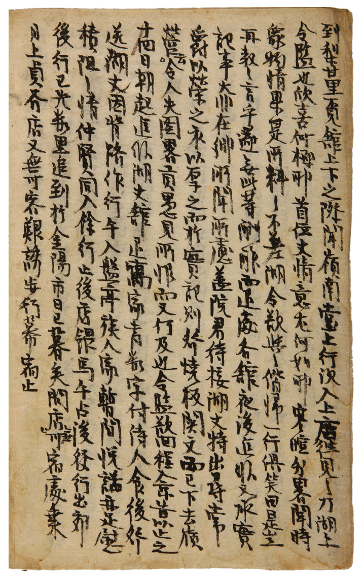 朝起。進候湖丈館。退寫家書數字。付侍人。食後發送湖丈。因背路作行。午入盤亭族人家。暫間悅話。亦足慰積阻之情。仲賢同入。餘行止後店餵馬。午占後發行。出郊。後行已先數里。追到於金陽市。日已暮矣。問店。無可宿處。乘月上貞谷店。又無可容。艱誘步行幕。宿止。