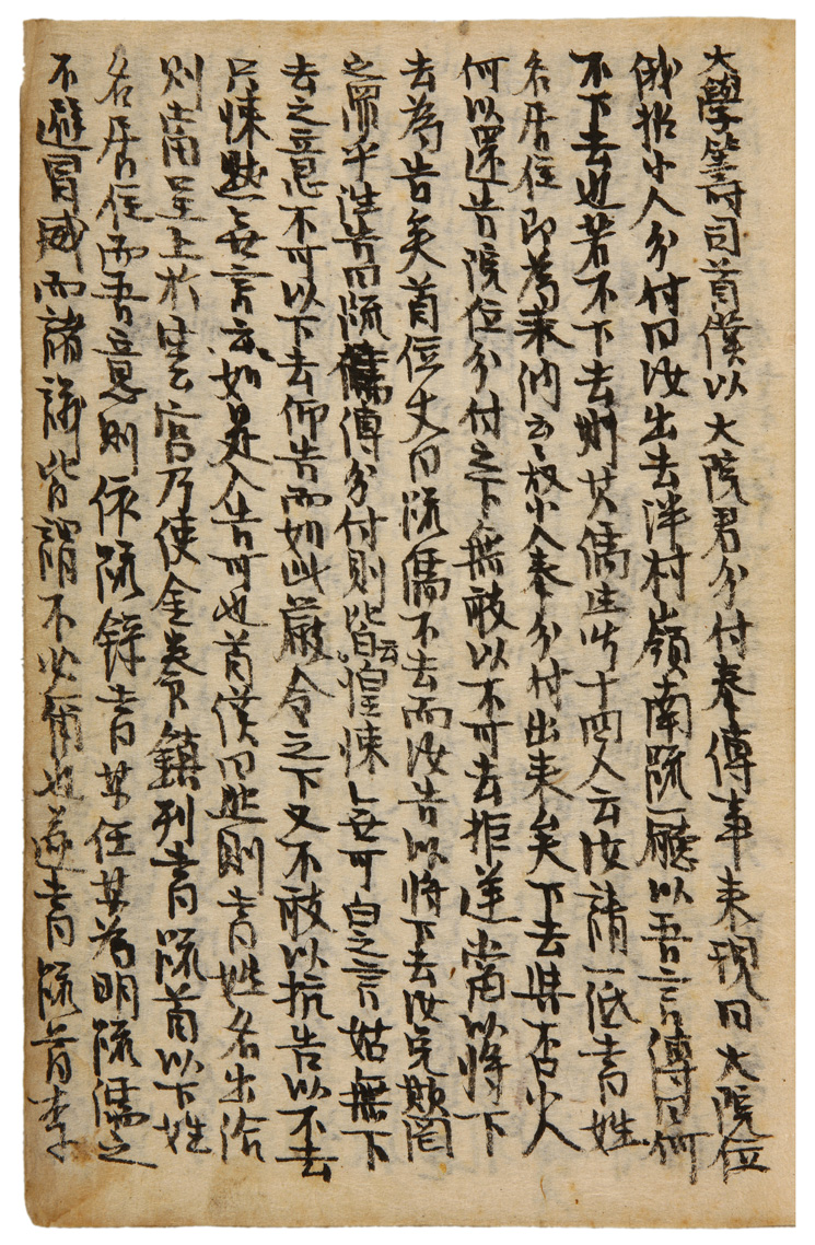裝送湖丈行。轎軍見空。不得已以吾馬呈上。約以吾下去時。則從他求買以歸爲計。午後。齊會議。以爲旣以明日定設廳發文之期。則不可以所聞風聲。而沮退回遑。凡干諸具。不可不預料。廳則仍於此館。寫疏處以西上房爲所。寫疏儒則金耆永金養鎭。合手爲定。取其精筆也。疏紙以明早分付紙躔。擇品以來。而價不計高下云云。如是之際。大學籌司首僕。以大院君分付奉傳事。來現曰。大院位俄招小人分付曰。汝出去泮村嶺南疏廳。以吾言傳曰。何不下去也。若不下去。則其儒生皆十四人云。汝請一紙。書姓名居住。卽爲來納云云。故小人奉分付出來矣。下去與否。小人何以還告。院位分付之下。無敢以不可去拒逆。當以將下去爲告矣。首位丈曰。疏儒不去。而汝告以將下去。汝免欺罔之罪乎。往告曰。疏儒傳分付。則皆云惶悚無可白之言。姑無下去之意。不可以下去仰告。而如此嚴令之下。又不敢以抗告以不去。只悚黙無言云云。如是入告。可也。首僕曰。然則。書姓名出給。則當呈上於雲宮。乃使金養鎭列書。疏首以下姓名居住。而吾意。則依疏錄書某任某。爲明疏儒之不避冒威。而諸議皆謂不必爾也。遂書疏首李某。其下則儒生某某。年齒爲次書給矣。夕後。首僕以私來言。還告依疏廳所言。則分付問。疏儒果生㥘乎。告以皆有惶懍之貌云云。則曰。更以下去出言也而已。無他分付矣。