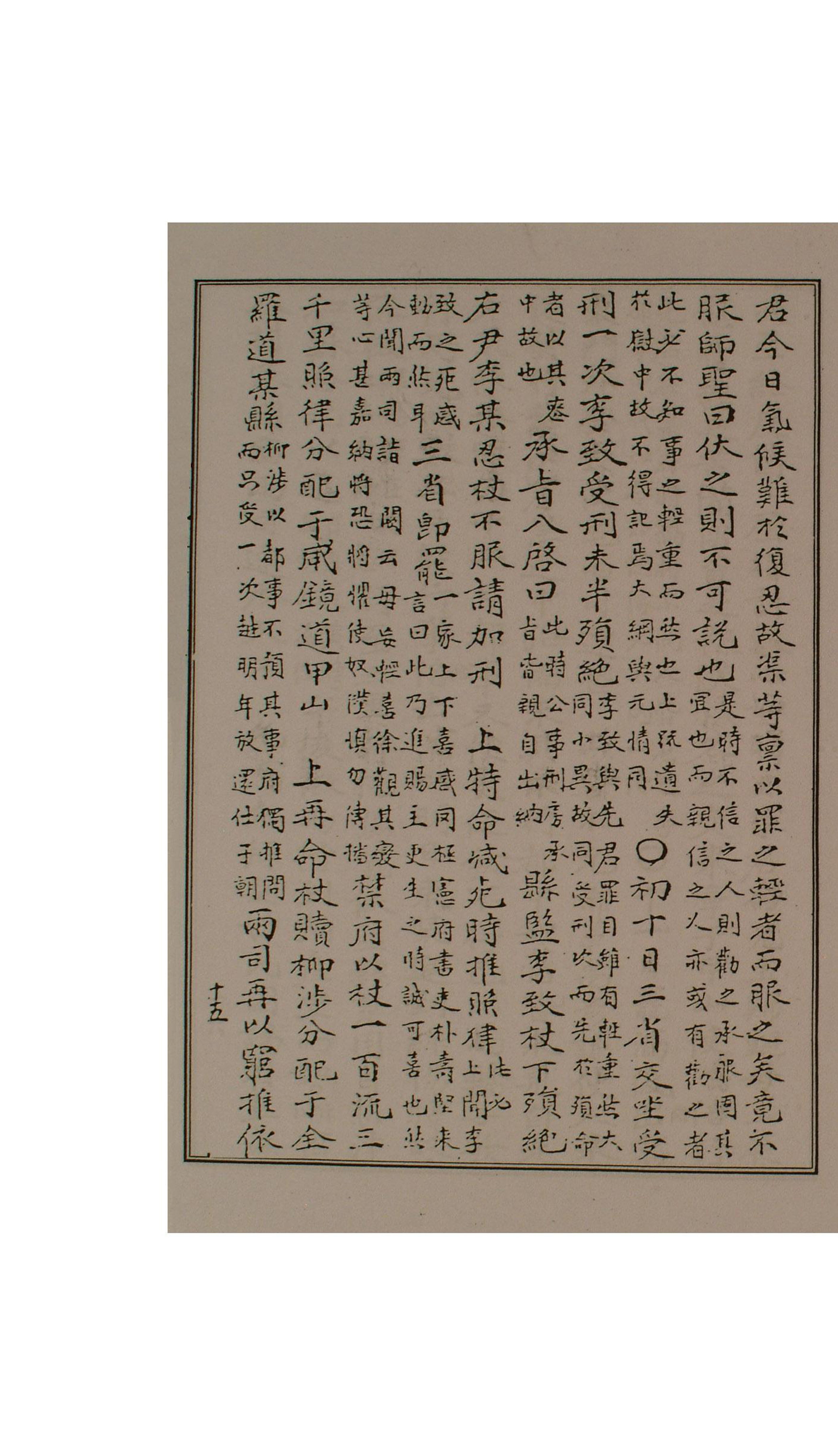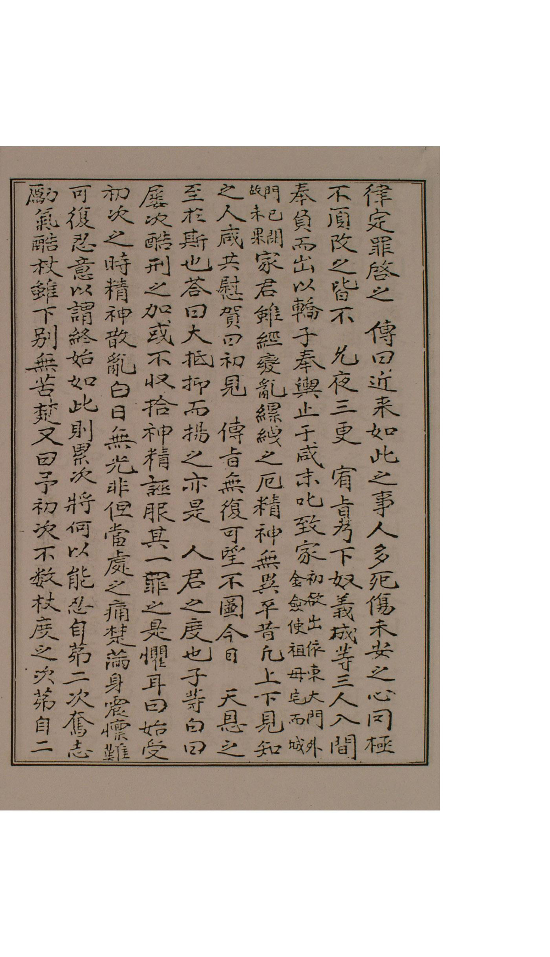 三省交坐。受刑一次。李致受刑未半。殞絶。【李致與先君罪目雖有輕重。然大同小異。故同受刑次而先於殞命者。以其喪中故也。】承旨入啓曰。【此時公事刑房承旨。皆親自出納。】縣監李致。杖下殞絶。右尹李某忍杖不服。請加刑。上特命。減死。時推照律。【此必上聞李致之死。感動而然耳。】三省卽罷。【一家上下。喜感罔極。憲府書吏朴壽堅來言曰。此乃進賜主更生之時。誠可喜也。然今聞兩司詣闕云。毋妄輕喜。徐觀其變等。心甚嘉納。將恐將懼。使奴僕愼勿傳播。】禁府以杖一百流三千里照律分配于咸鏡道甲山。上再命。杖贖柳涉分配于全羅道某縣。【柳涉以都事不預其事。府獨推問而只受一次。越明年。放還。仕于朝。】兩司再以窮推依律定罪啓之。傳曰。近來如此之事。人多死傷。未安之心罔極。不須改之。皆不允。夜三更。宥旨乃下。奴義成等三人入間。奉負而出。以轎子奉輿止于咸末叱致家。【初欲出依東大門外金僉使祖母宅。而城門已閉。故未果。】家君雖經變亂縲絏之厄。精神無異平昔。凡上下見知之人。咸共慰賀曰。初見傳旨。無復可望。不圖今日天恩之至於斯也。答曰。大抵抑而揚之。亦是人君之度也。子等白曰。屢次酷刑之加。或不收拾神精。誣服其一罪之是懼耳。曰。始受初次之時。精神散亂。白日無光。非但當處之痛楚。滿身震懍。難可復忍。意以謂終始如此。則累次將何以能忍。自第二次奮志勵氣。酷杖雖下。別無苦楚。又曰。予初次不數杖。度之次第。自二次至終度。箇箇屈指計數。心如曙日。家君命兄主歸覲母主。展慰憂戀之苦。備留資之糧。俟秋冬之交。來寧于甲山。使㝯倍陪行。【先君在禁府時。禍將不測。人皆危之。李都事曰。我知令公德像。必不爲凶終。】