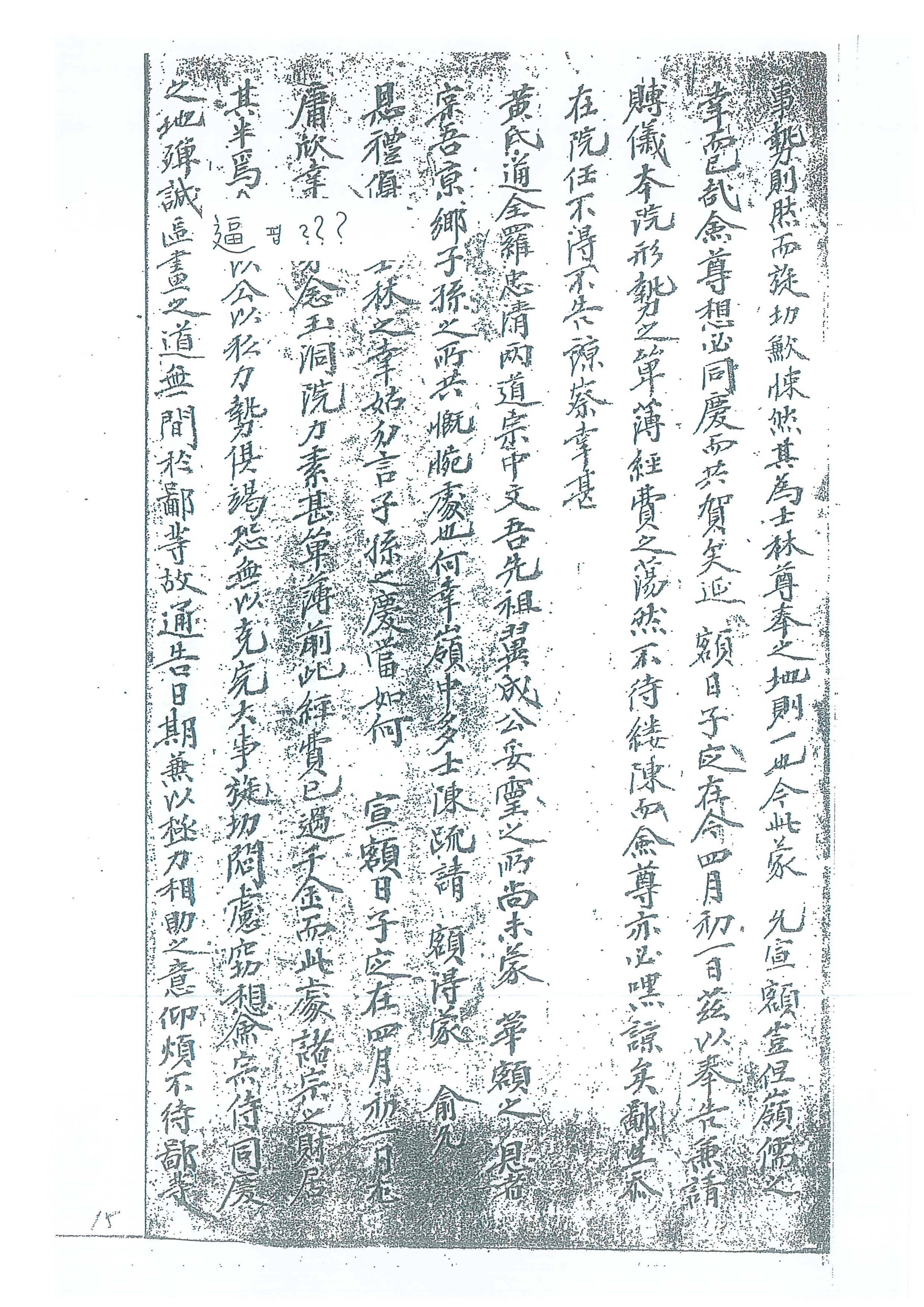 院長柳聖霖가進士黃景幹에게답장의편지를보냈다.